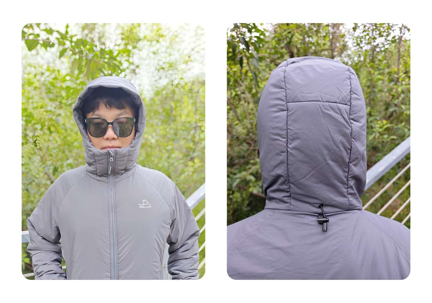 回到这款金标p棉服。在设计细节上,它充分考虑了中高海拔的攀登、徒步和滑雪需求。采用加高防风连帽款式,防风、防雨、防雪,保护头颈。