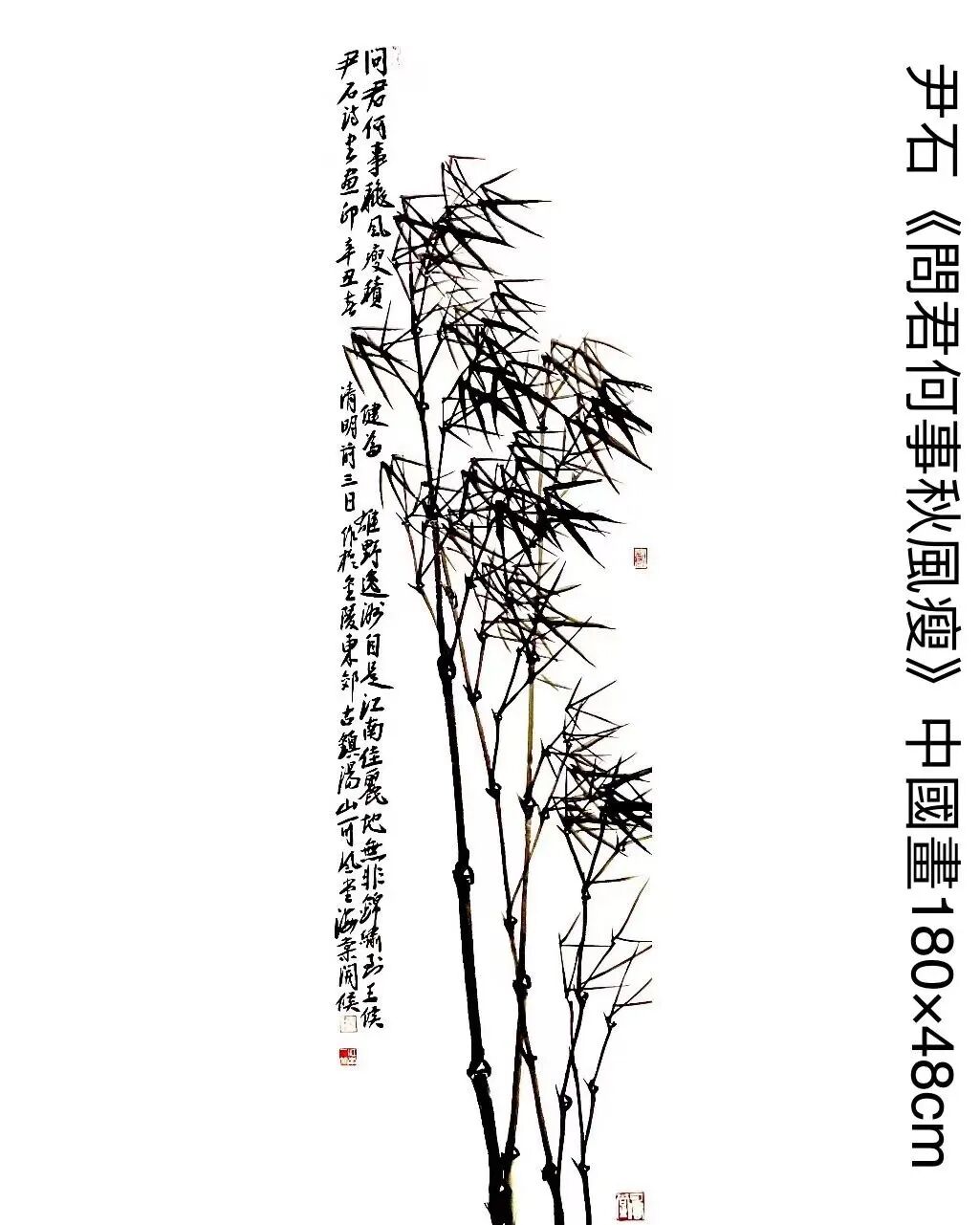 ▲擅長寫意花鳥,兼作山水。以墨竹、紫藤、鷹等題材為其特長,尤以“江南一竹”名世。作品多次參加國際國內的各類展覽、穫獎。岀版專著有《寫意墨竹法》、《寫意菊花法》、《怎樣畫竹•提高篇》、《尹石中國畫精選》、《尹石書畫篆刻作品集》、大型《尹石作品集》上下卷、《南京,我的港灣——尹石詩鈔》等。辭條及作品被輯入多部辭書和大量分類作品集中,有作品被國內外美術館收藏。論文、詩詞、散文等散發國內外各類報刊。