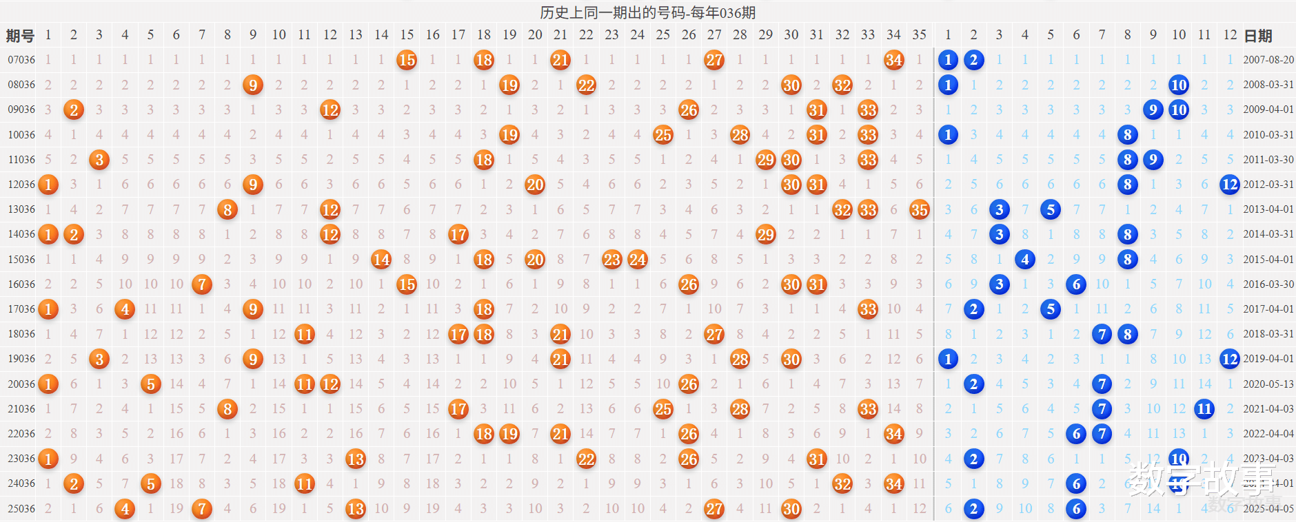 博弈心理,挑战概率: 看近期开奖号码,也可看历史数据统计!【大乐透26036期多角度冷热号】大乐透26036期四维走势图,前后区号统计及冷热号1) 历史同一天:04月06日 (共9期)