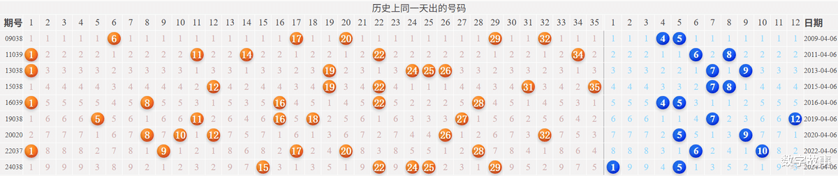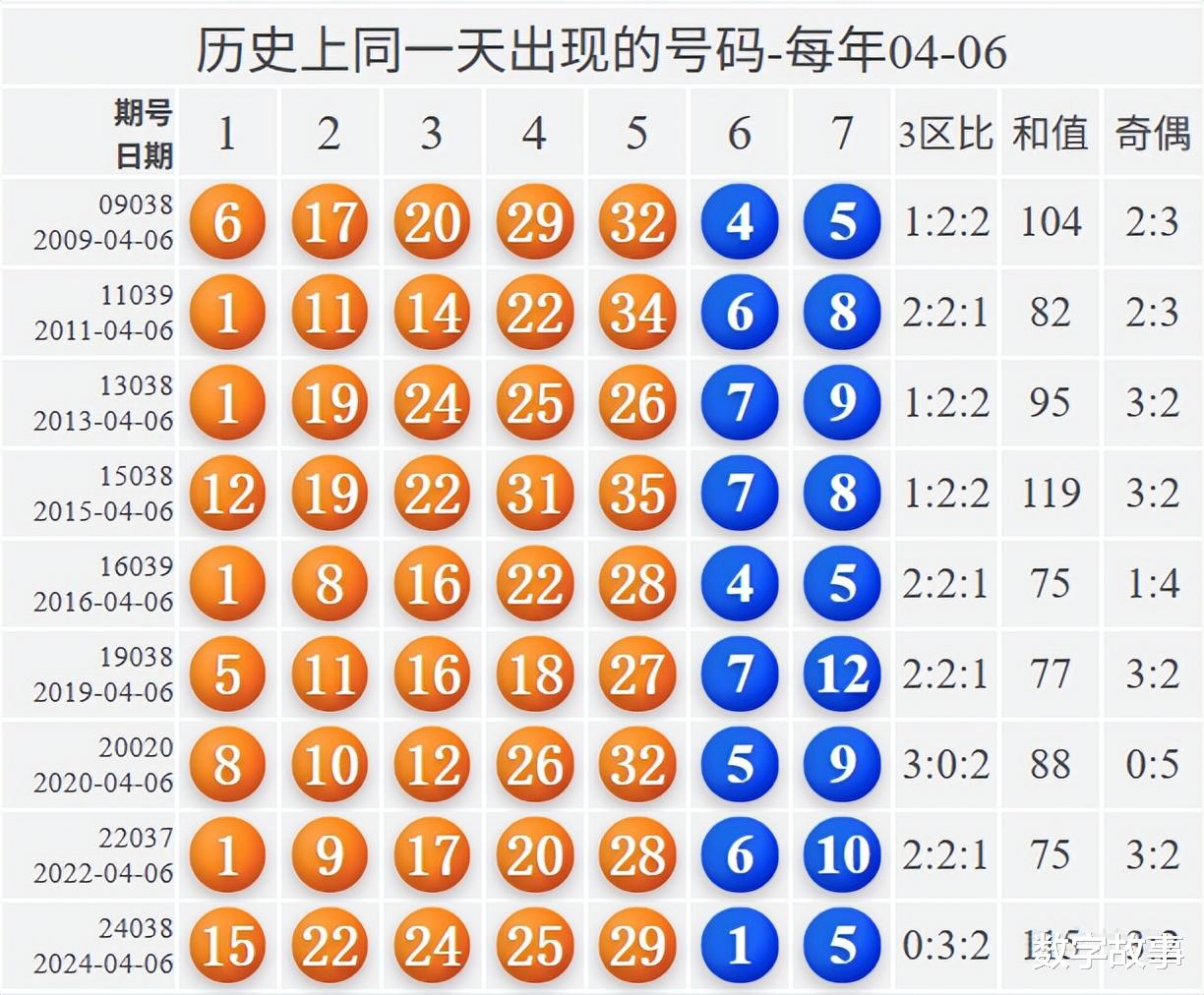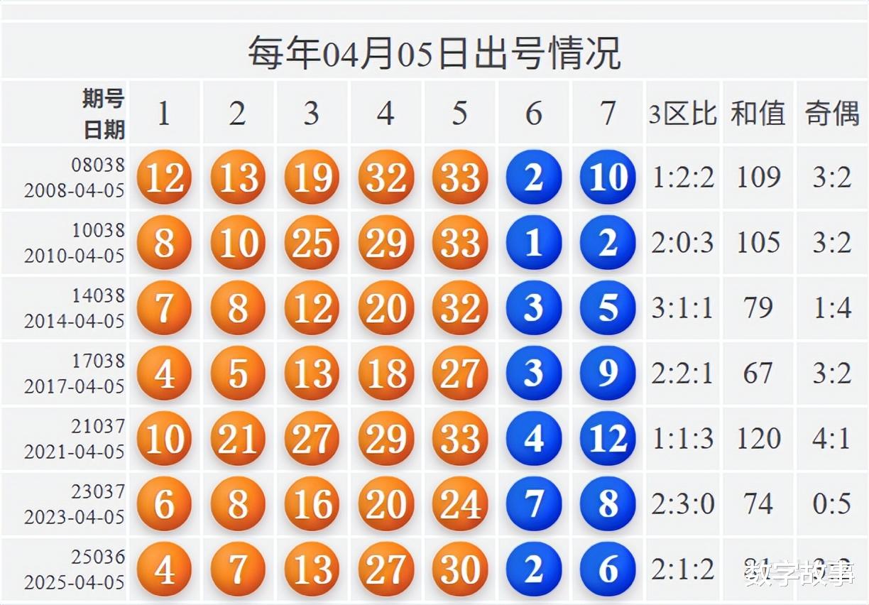 【其他历史数据查询统计】大乐透历史上的今天2026-04-05 星期日 大乐透不开奖每年04月05日出号情况:
