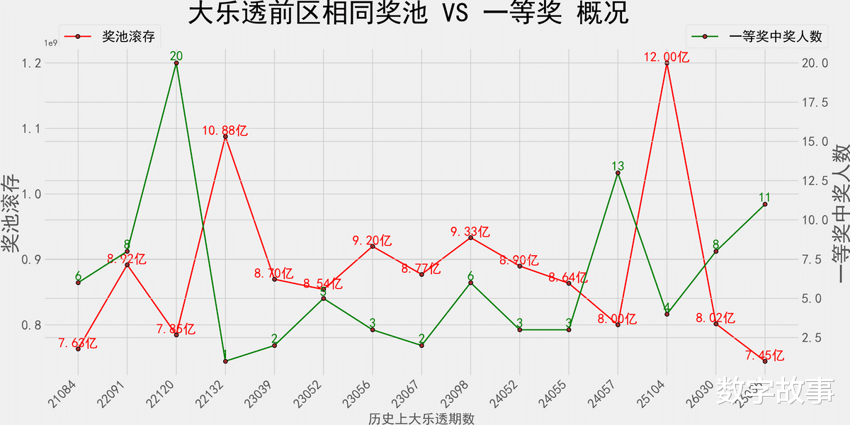 大乐透26035期一等奖:11注,追加: 0注二等奖:91注,追加: 30注。本期全国销售金额:3.240 亿 奖池滚存:7.447 亿.近15期奖池滚存, 中奖情况等信息: