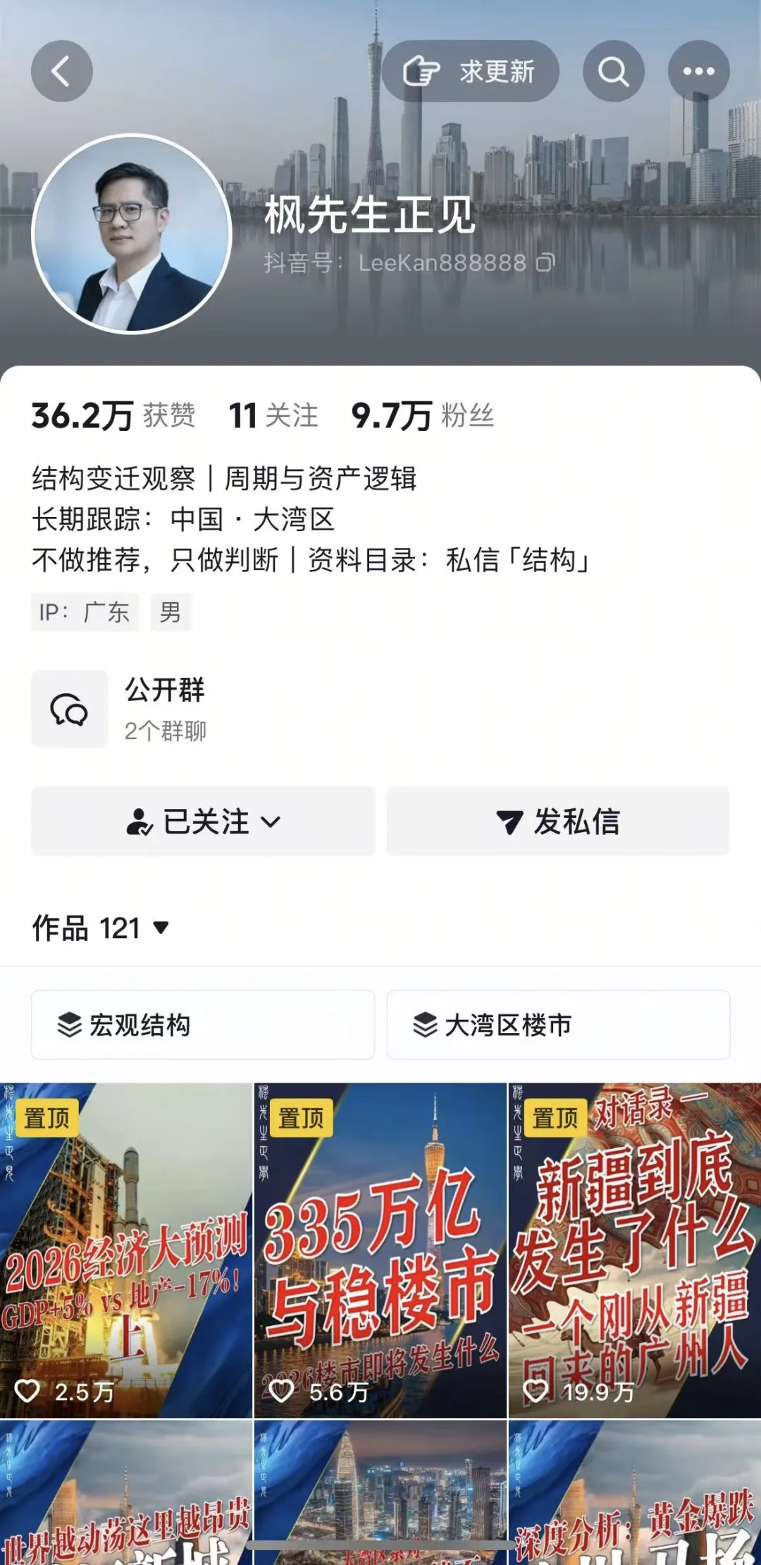 广州房叔“破圈”:流量与业务双丰收全男团广州房叔迎来枫先生后,在视频端频频产出100万+作品,属实吃上了流量红利。房叔团队严格来说属于二次创业,原媒体人林舜超接手后,一直积极尝试各种模式:深度内容、视频拍摄、MCN运营、直播获客成交等。此次视频端爆发,可谓厚积薄发。流量之外,近期业务量也迎来小阳春,据其透露创下近年新高。问题是,这波热度能否持续?革命尚未成功,同志仍需努力。