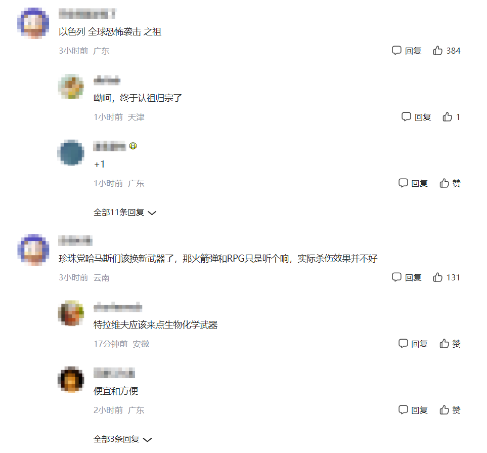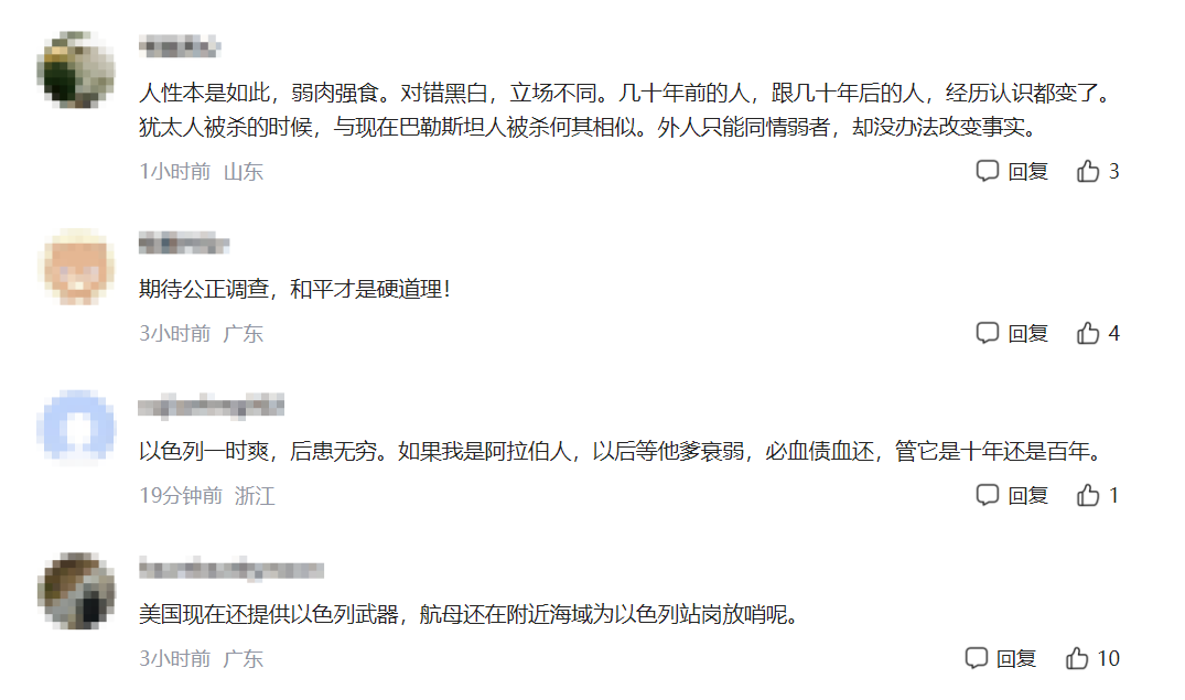 此事引起网友热议。有网友表示:“以色列搞恐怖袭击、种族灭绝,欧洲为啥不提援助巴勒斯坦?”也有网友呼吁:“世界需要和平共处!!!”