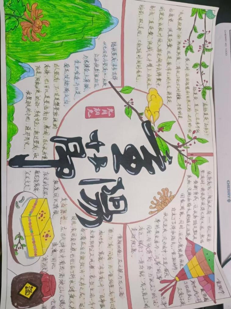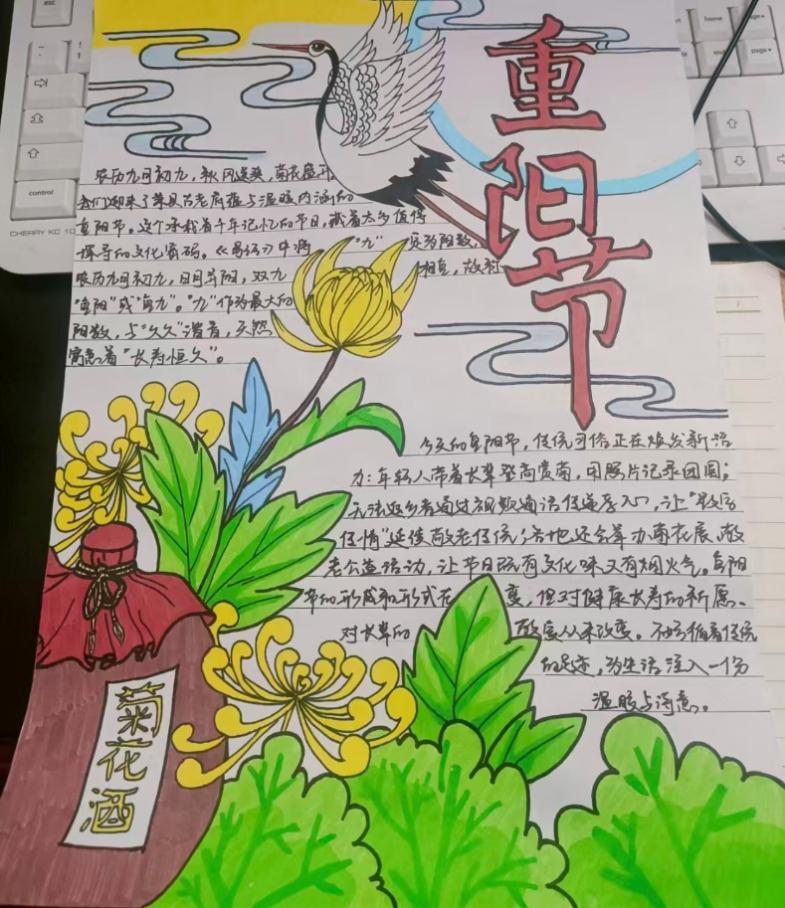 重阳节,承载着中华民族“敬老崇孝”的文化精髓与“祈福安康”的人文情怀。本次手抄报活动旨在引导同学们通过亲手绘制、创作的形式,主动探寻重阳节的历史渊源、民俗风情及其所蕴含的孝道文化、生命哲理。活动通知一经发布,便得到了同学们的积极响应和热情参与。