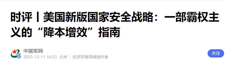 不久前,美国发布的33页国家安全战略报告,正是这场转向的正式宣言——美国亲手摁下了旧时代的删除键,直指三大战略重构。