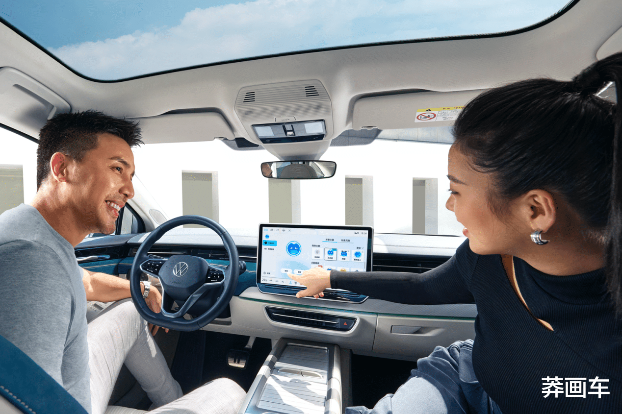 在内饰层面,传统的液晶仪表已经消失,仅保留了镶嵌在面板中的小尺寸仪表,中控部分则和特斯拉一样采用了一块大尺寸屏幕,达到15英寸2K分辨率,内置大众全新一代车机操作系统ID. OS 2.0。