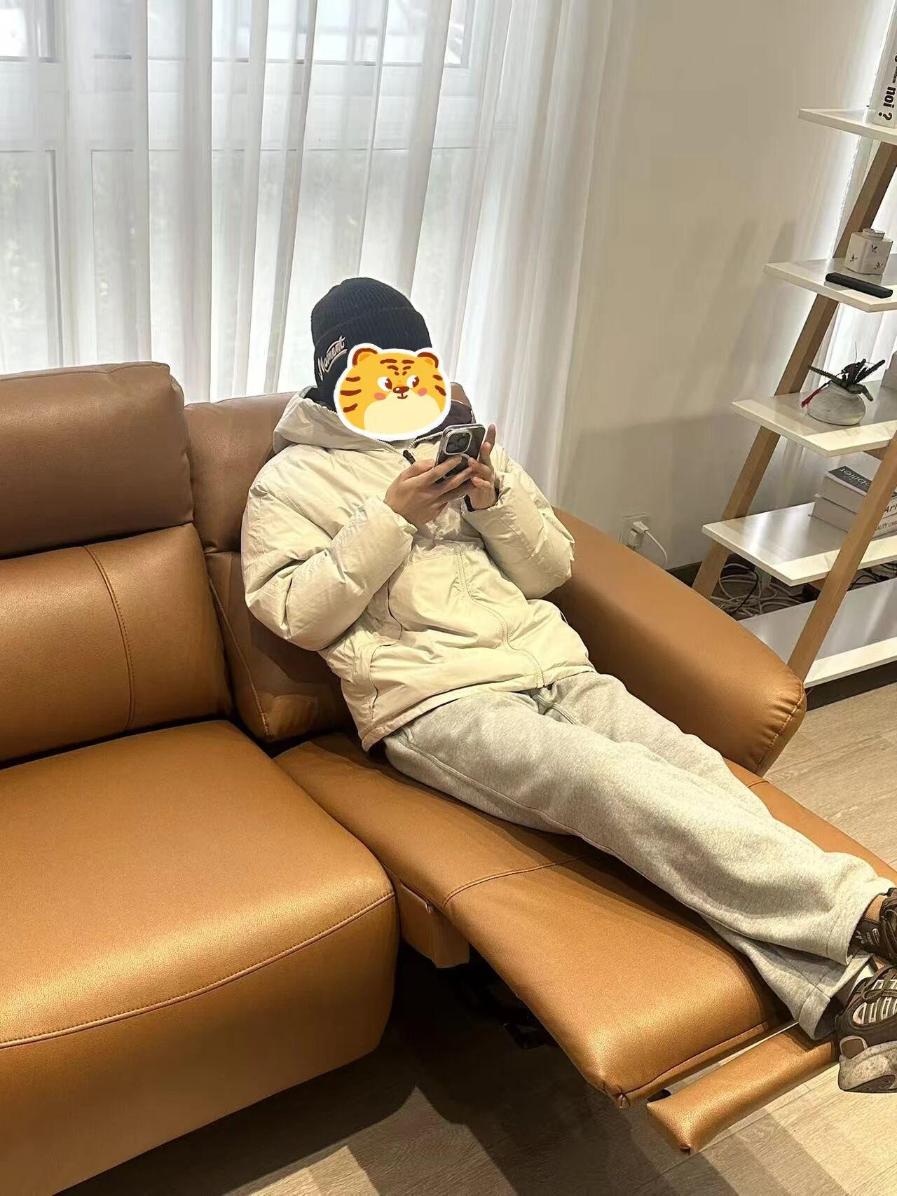 如果说外观让我心动,那实际体验下来,发现这沙发简直是为解决家庭 “沙发争夺战” 而量身定做的。左右两个座位都是独立电动操控,一键就能调节角度,完全不互相影响。现在我和太太下班回家,一人往一边坐,我一键调到 139° 平躺模式,腿托自动升起,舒舒服服看球赛;太太在右边调到 110° 半躺姿势,靠着追剧刷手机,再也不用为了抢舒服的位置互相妥协。偶尔有客人来住,三个人坐也不拥挤,真正实现 “一人一位,各得舒展”。