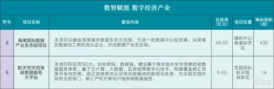 数字经济产业方面,文昌推出2个招引项目:海南国际数字产业生态园、航天空天信息碳数据服务大平台。