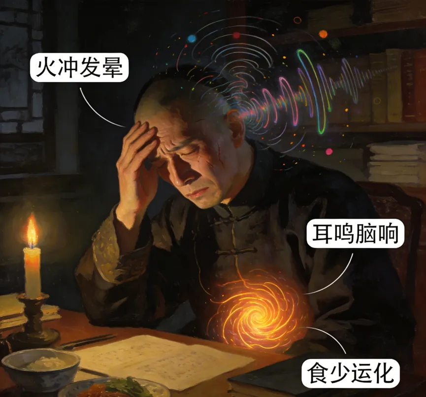 其二,神经系统症状,“火冲发晕”“耳鸣脑响”“梦遗滑泄”等症状,契合慢性肾衰患者因毒素蓄积引发的神经功能异常,早期即可出现注意力不集中、记忆力减退等表现,晚期可发展为幻觉、谵妄等5。