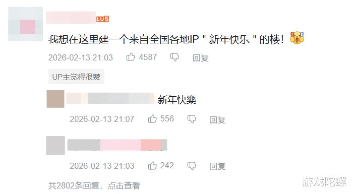 《三角洲行动》的新春会视频下,楼中楼互道新年快乐,一层叠一层,祝福刷到上千层。