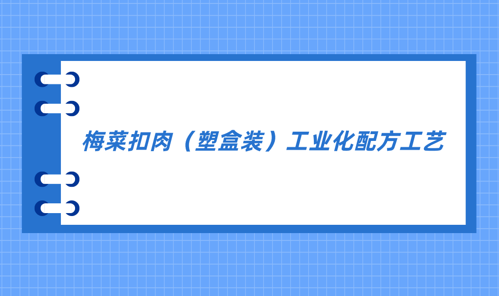 以往生产软包装梅菜扣肉,多将调味后的多个肉块与经调理的梅菜分别秤量之后,经拌和置入复合袋内。制作的产品开包后两者混杂一起,缺少产品应有的观感,为弥补这个不足才采用盒装。这样使肉块可以化零为整,包装后又有层次感,特别在实施高温无菌与食用前的加热蒸煮时,熔出的脂肪很快被湿润了的梅菜所吸收。在油液的润泽之下它更柔软可口。所以梅菜扣肉的组合在色调上两者相映成趣;而在口感上它们又相得益彰,或许这就是浙江菜系的迷人之处!