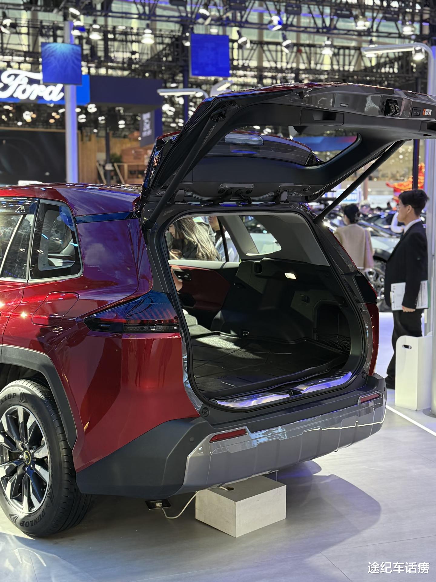 绕到车后,我把露营用的折叠桌塞进后备箱,居然还能再放两个 20 寸行李箱 —— 工作人员说后备箱比上代深了 5cm,我蹲下来看,底板下面还藏了个小储物格,刚好放露营灯和充电线。试驾车在展区转了圈,双擎版的油门很轻,踩下去没延迟,过减速带时,车身没颠得人晃脑袋,连发动机的声音都小得几乎听不见。
