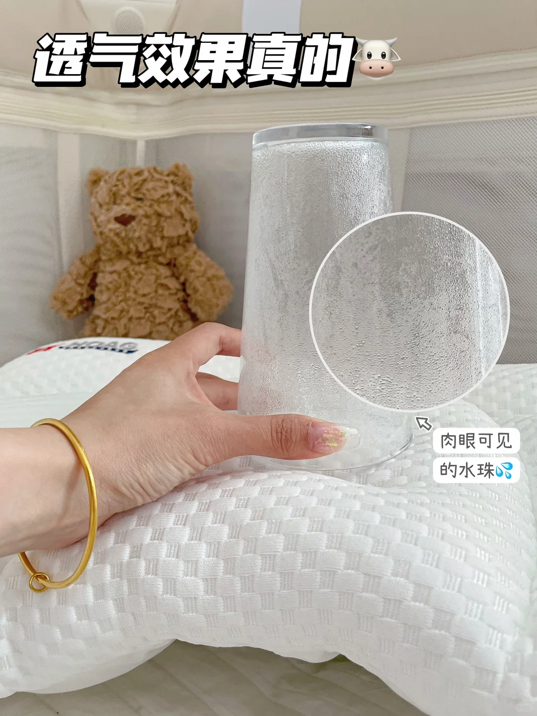 杜邦纤维+桑蚕丝+珍珠棉的填充物,透气不闷热,特别适合春夏哇!枕头自带凉感,两侧还有排气结构,像我家宝宝就属于爱出汗的体质,用它刚刚好!