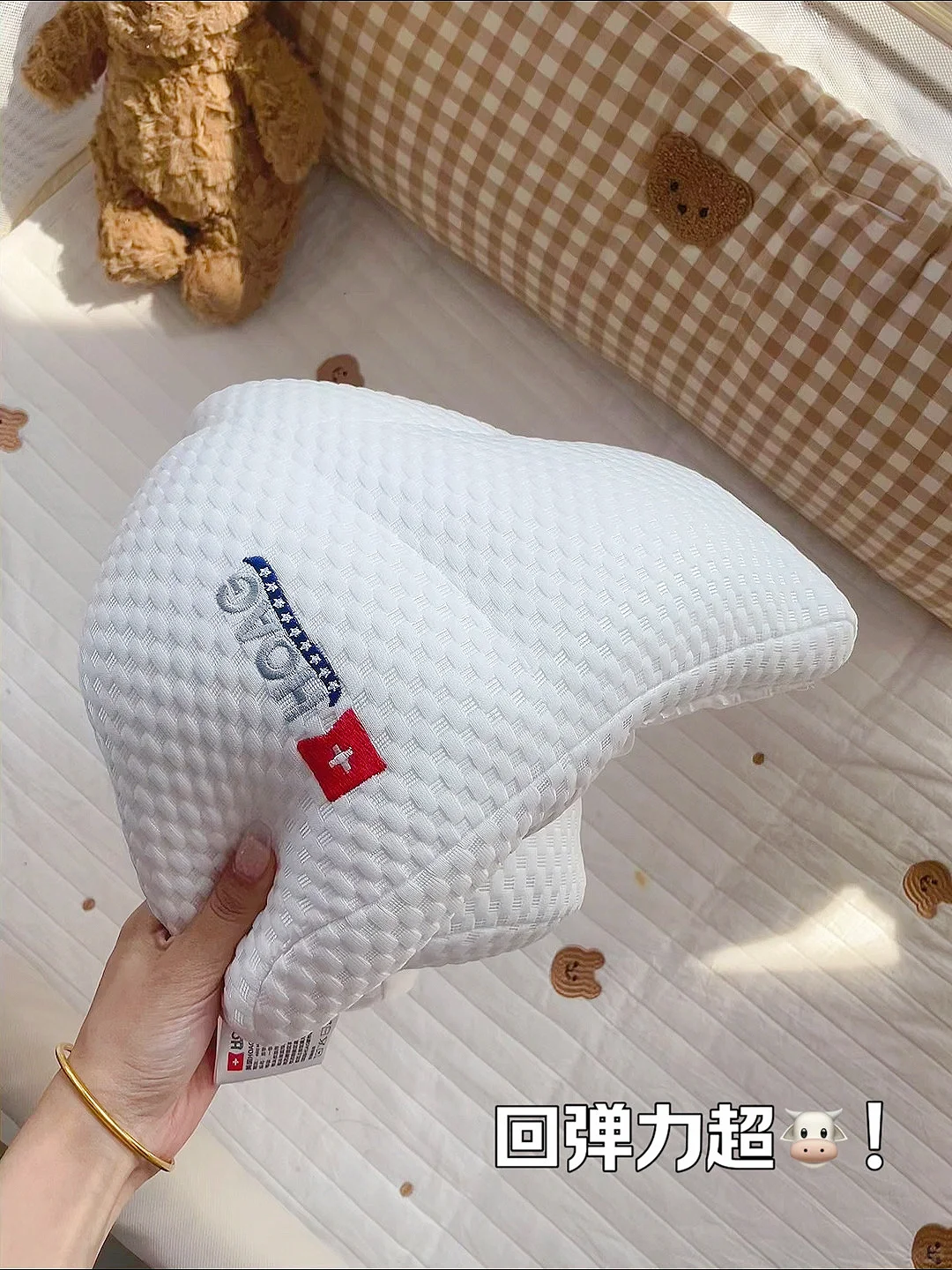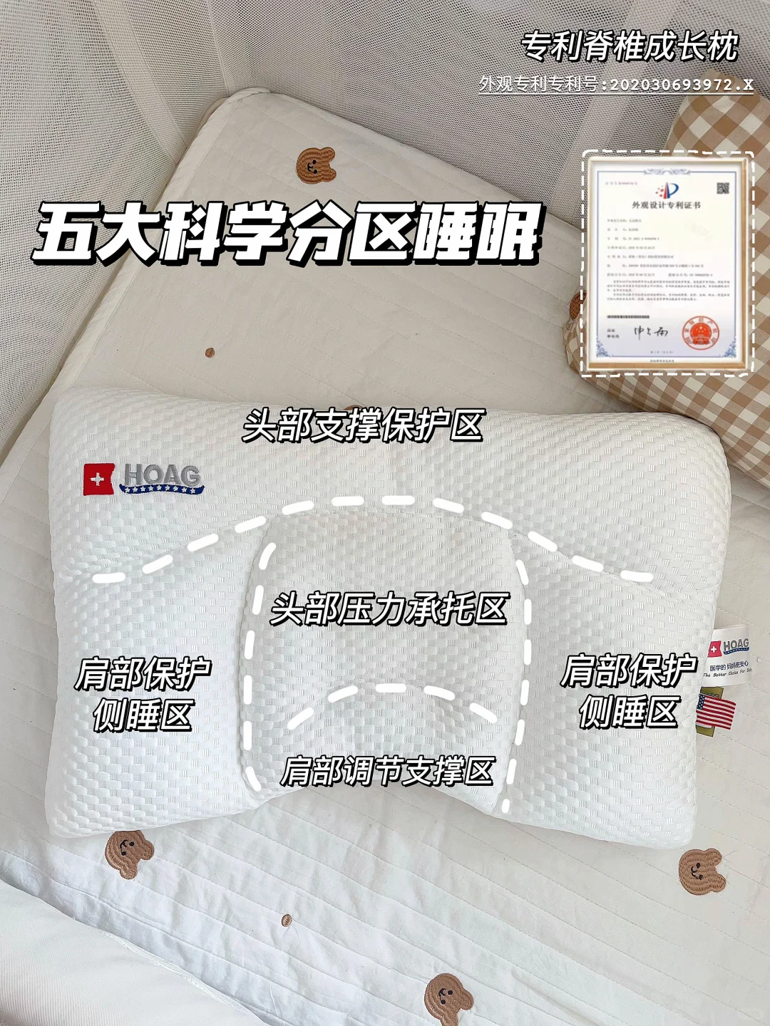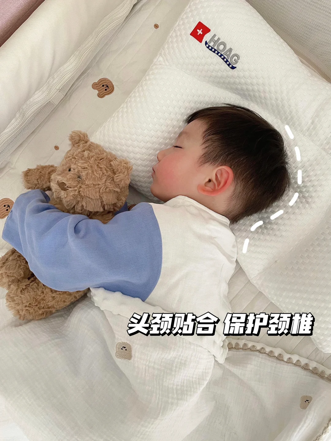 到手惊艳了!母婴级A类亲肤面料,躺上去好柔软,好舒服,自然就能把头摆正,肩颈也都有支撑感,不管平躺还是侧睡都不累,科学分区是真的🐮!仿生弧度,更贴合宝宝脊柱曲线,护脊这方面hoag真是一把好手!