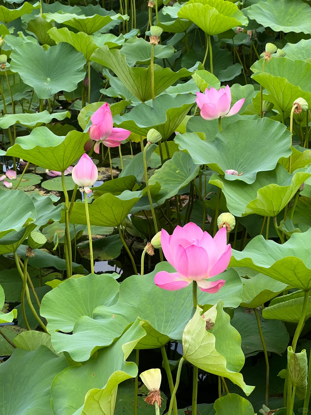【听雨】 倚在窗前听雨,放空大脑,淅淅沥沥的小雨好像带有魔力一般,燥热顿消,抚静心绪。 【赏荷】 小暑一过,荷花盛开,为什么古人偏偏喜欢顶着骄阳观荷呢? 身临其境,我找到了答案,褪去了快节奏的浮躁, 淡雅的朵朵粉色是 满塘绿色随风而动是 【写字】 画一朵荷花,写一句荷香。 ————— “荷风送香气,竹露滴清响。” “灼灼荷花瑞,亭亭出水中。” 💛放慢生活,愉悦自己💛