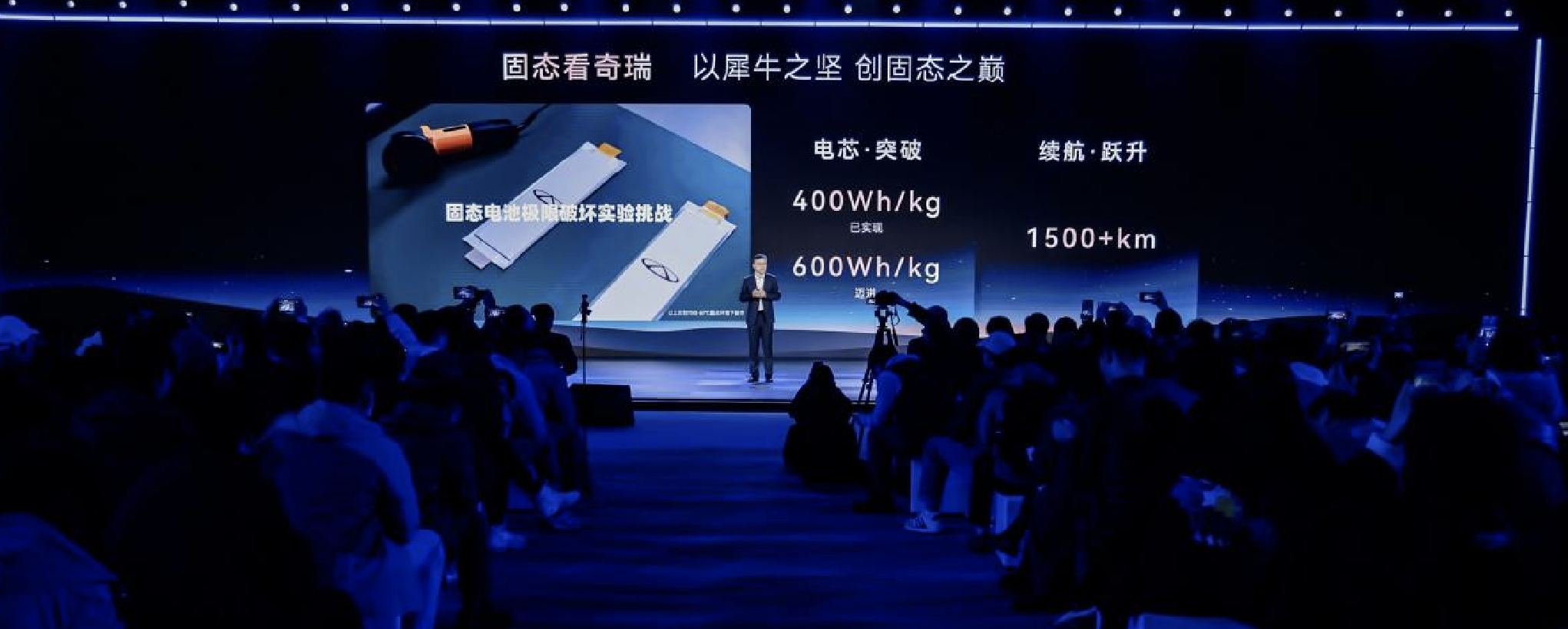 奇瑞固态电池电芯能量密度已实现400Wh/kg,正向600Wh/kg迈进,续航已达到1500+km。在材料方面,奇瑞全固态电池搭载电解质晶格锚定、正极护盾和负极应力疏导等领先技术,性能与安全兼顾;在工艺方面,采用了超薄涂布、温等静压和一体式化成等攻坚技术,能耐600+MPa超高压力,可实现全流程智能自动控制;在AI助力下,奇瑞全固态电池已完成超100万次设计迭代和超100个全局关键指标优化。