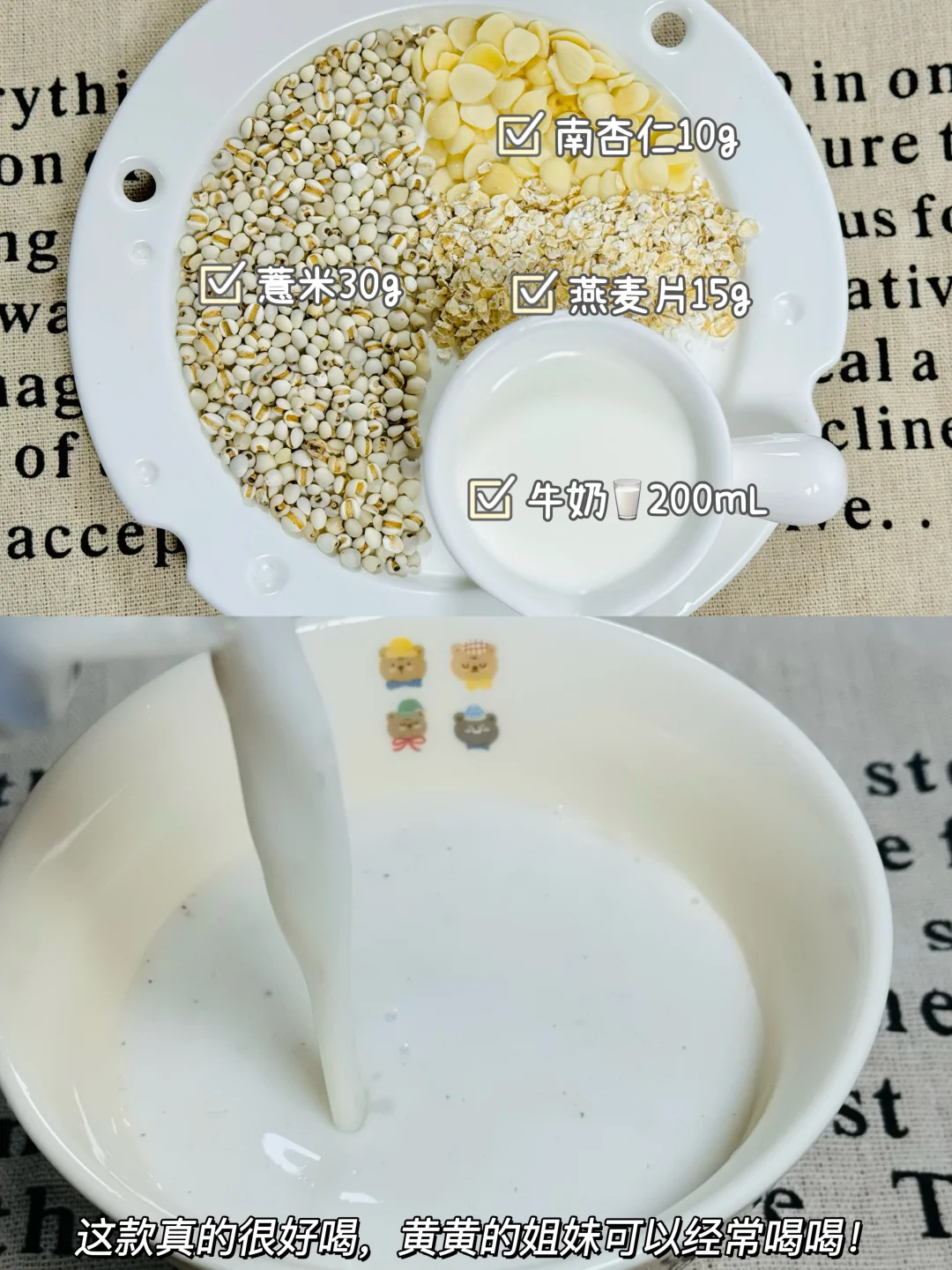 6️⃣薏米➕南杏仁➕燕麦片➕200mL牛奶