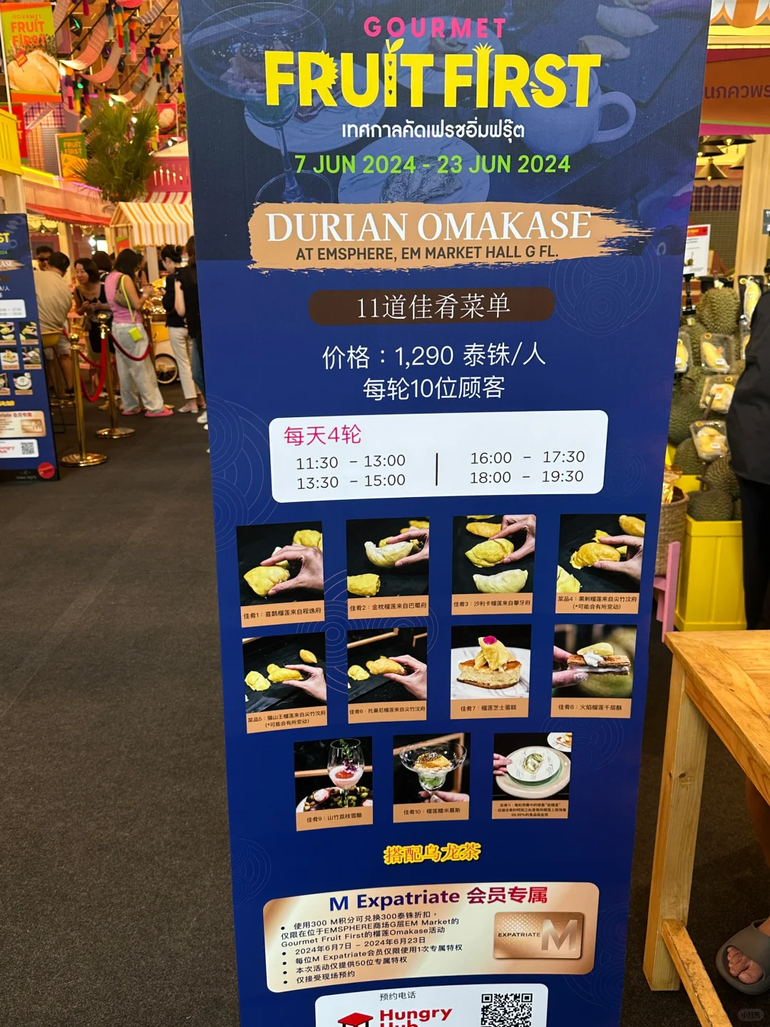 📍EMSPHERE Market Hall 6月7日到23日 别错过精品水果尊享活动的盛宴 . 错过榴莲料理的朋友们 这次可别再放过 这里汇聚了泰国各种珍稀榴莲和多样热带水果, 这次活动的“主角”——精品榴莲料理 11道令人惊艳的菜品 每一道都是味蕾的享受 只需1290泰铢 🥭🍇🥑🍍🫐🍋🍒🥝 带上好友来一场别开生面的美食探索 .