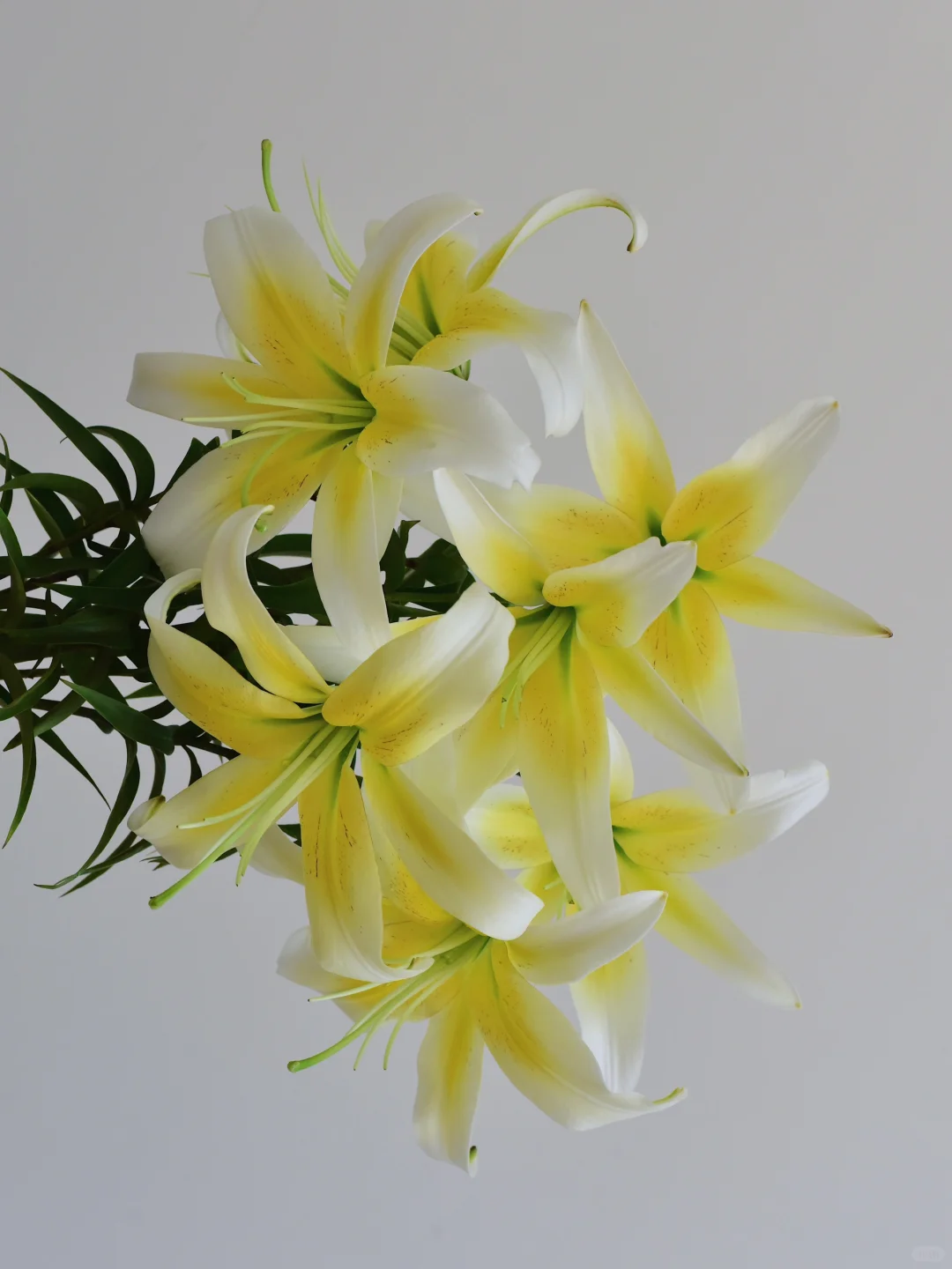 黄芯白边,黄色部分还有零星斑点,很美的一款百合。
