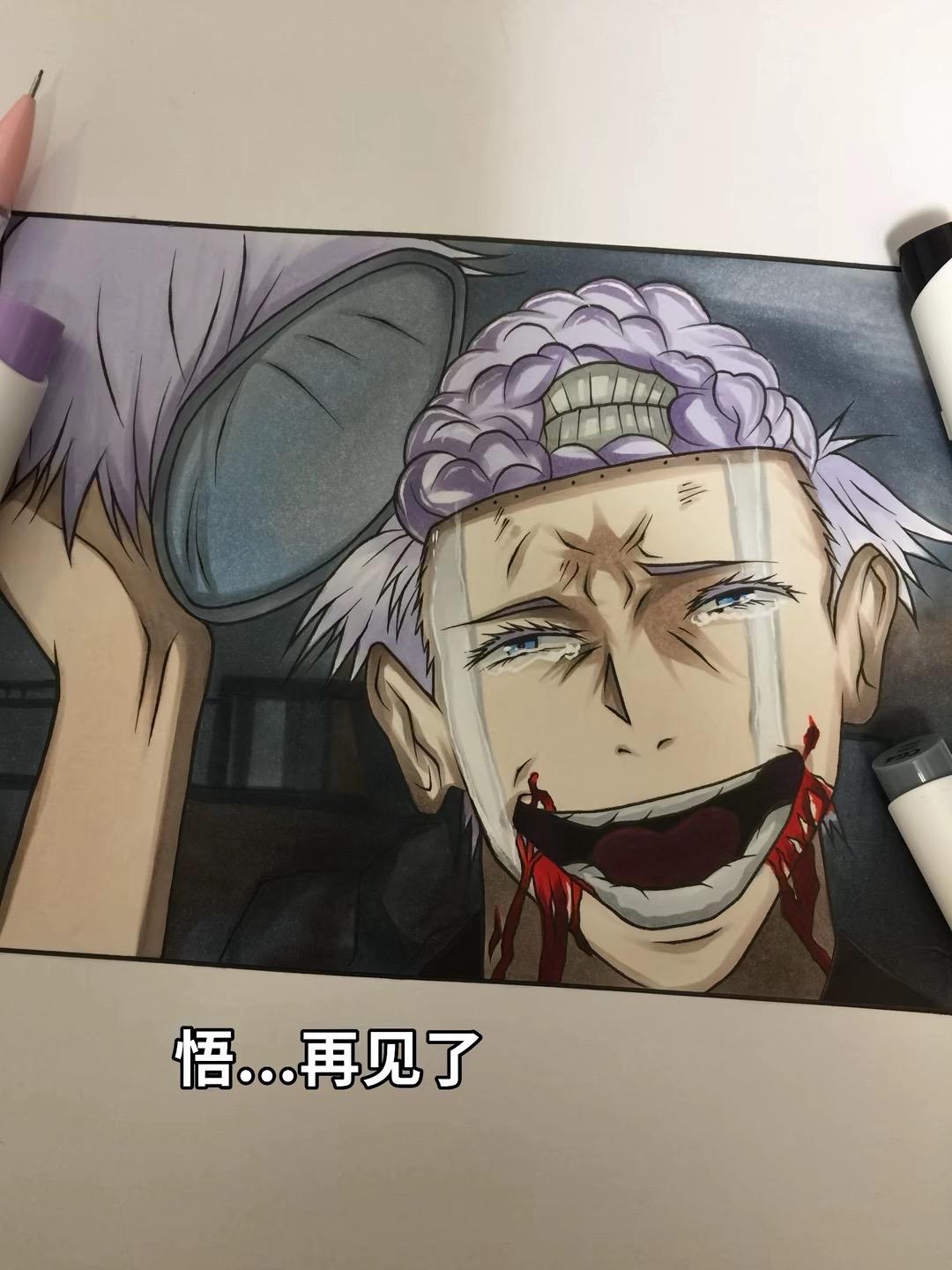 悟...你什么时候也开始变得这么丑陋了,你不是说你是最强的吗。 五条悟 手绘 儿童画 画画 咒术回战 绘画工具:威思立马克笔