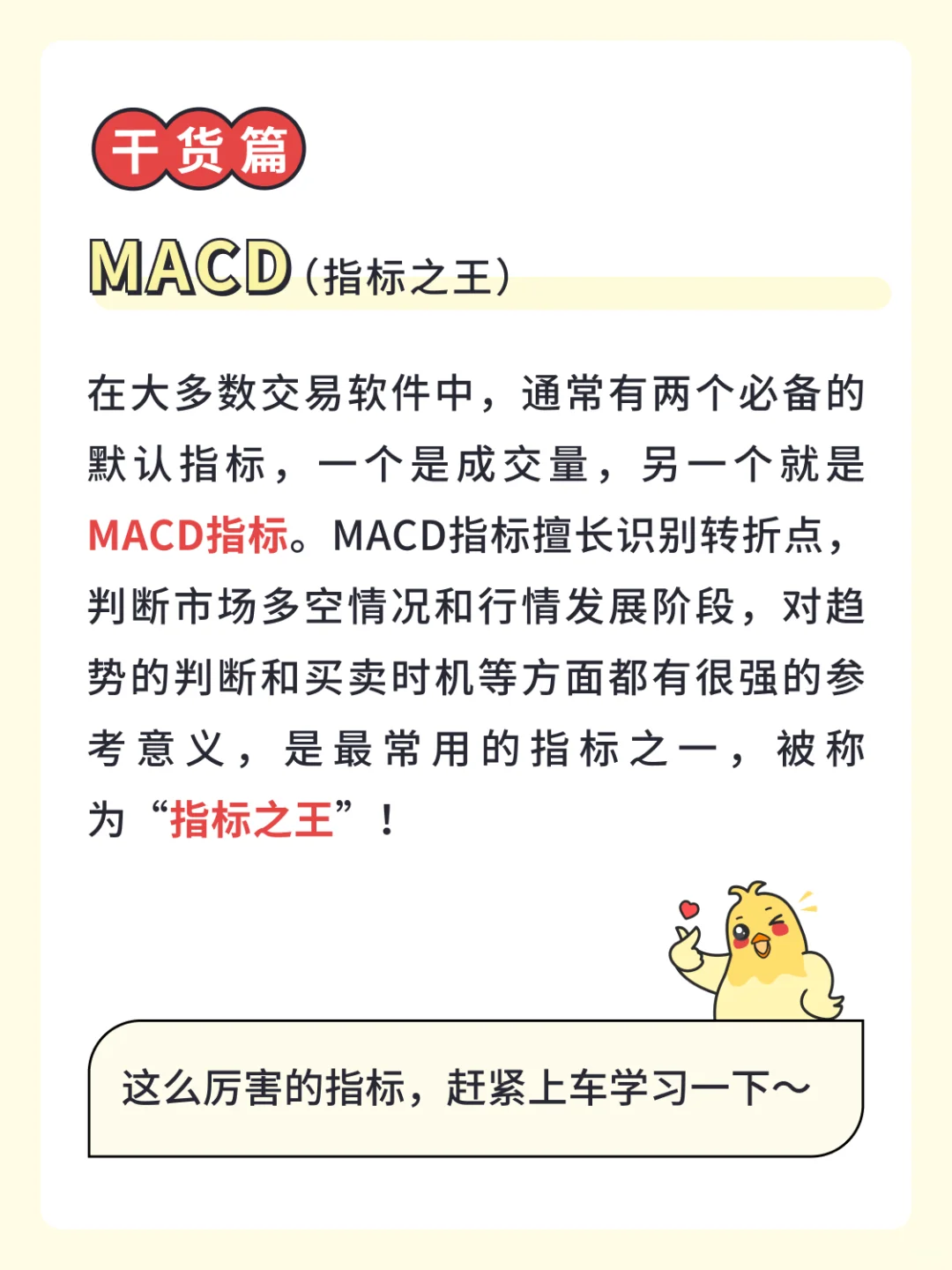 在大多数交易软件中,通常有两个必备的默认指标,一个是成交量,另一个就是MACD指标。MACD指标擅长识别转折点,判断市场多空情况和行情发展阶段,对趋势的判断和买卖时机等方面都有很强的参考意义,是最常用的指标之一,被称为“指标之王”!