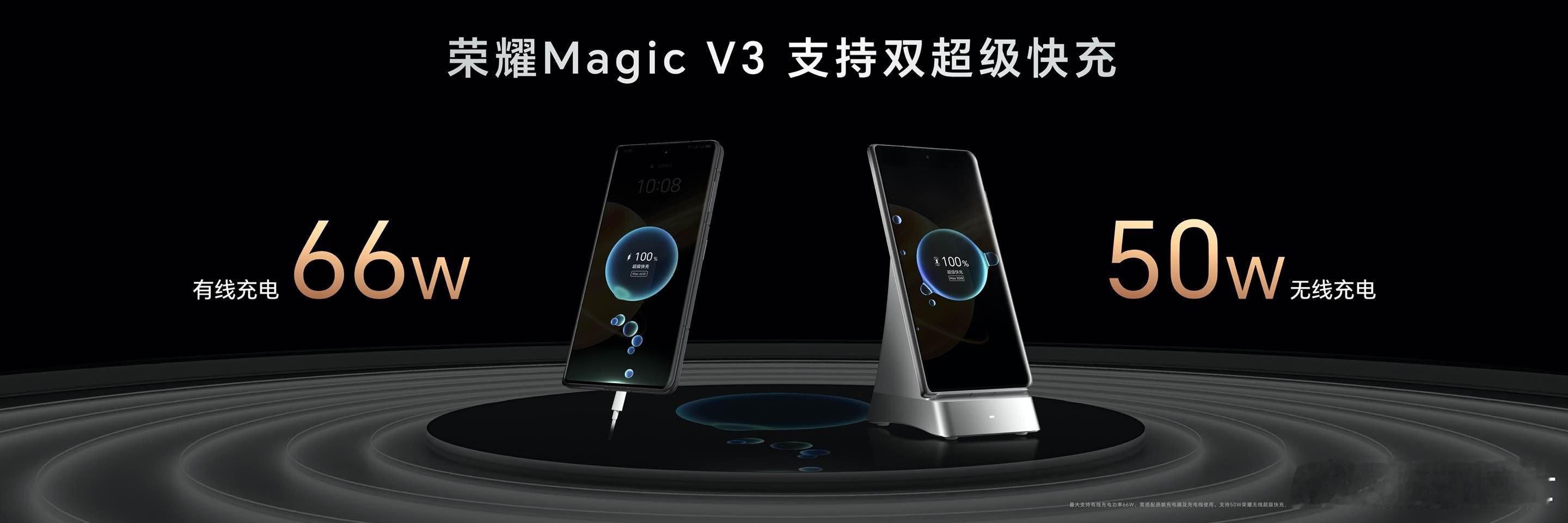 #荣耀Magic V3#搭载骁龙8Gen3,采用业界最轻最薄的纯钛散热VC,支持66W有线快充和50W无线快充,首发第三代青海湖电池,硅含量突破10%,电池容量提升至5150mAh,平均厚度仅为2.6mm,凭借出色的续航表现,荣耀Magic V3成为首款通过中国质量认证中心“24小时续航认证”的手机。行业首款支持天通卫星通信,实现双向语音通话和双向短信收发。