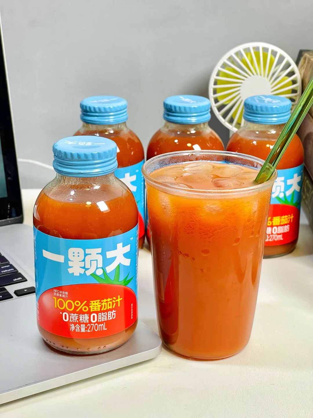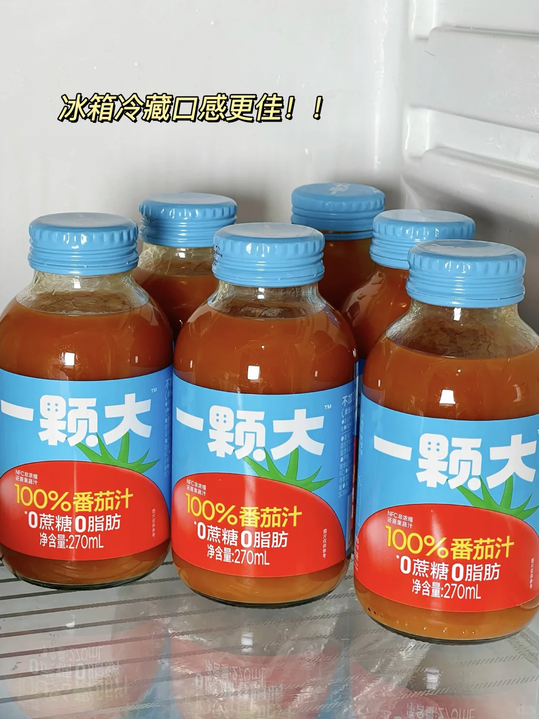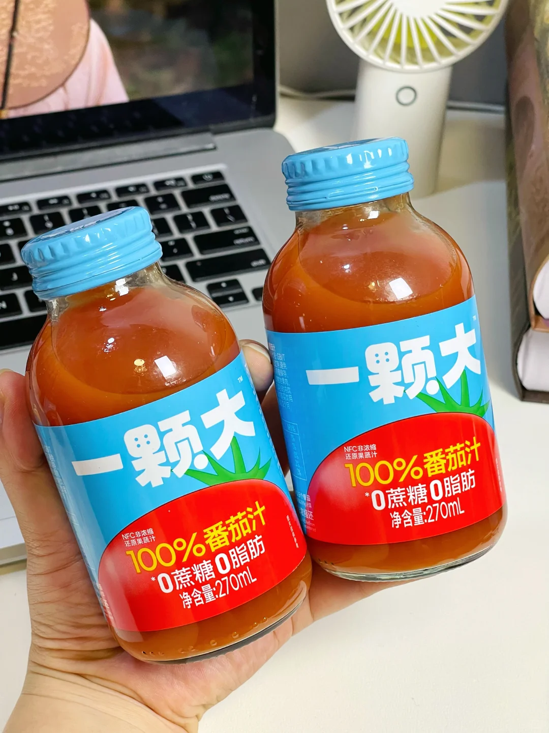 去冷白皮闺蜜家玩,喝了一瓶冷藏的番茄汁,一下子就被种草了!! 就是这个一颗大100%番茄汁🍅 回家果断囤了一箱!! - 它这个配料干干净净,只有鲜果番茄!! 酸酸甜甜超好喝,浓郁的番茄果香,不愧是 100 多天自然成熟的番茄🍅 一瓶≈3.5 个番茄,不爱吃蔬菜的宝子也能及时补充 VC!! 而且里面含有番茄红素,怪不得闺蜜素颜这么抗打,女孩子一定要多喝!! 0 糖 0 脂0 添加,减脂期也可以大口吨吨吨~ - 早上来一瓶元气满满,好喝又营养,比奶茶健康多了!! 建议黄黑皮姐妹都去试试!!