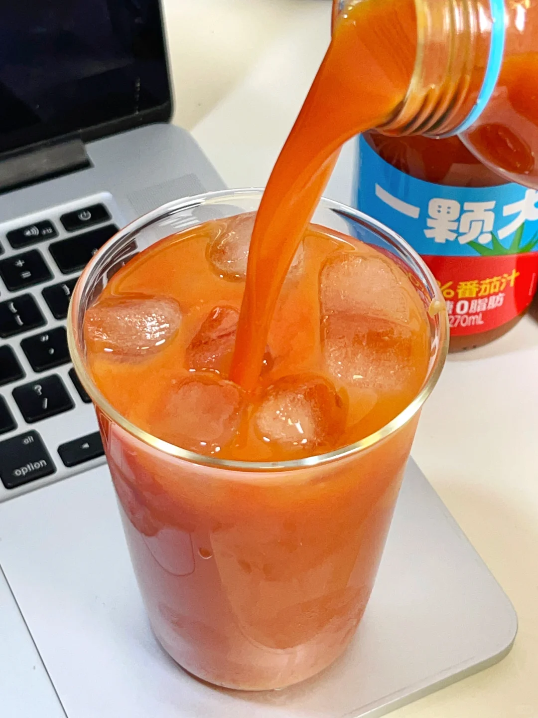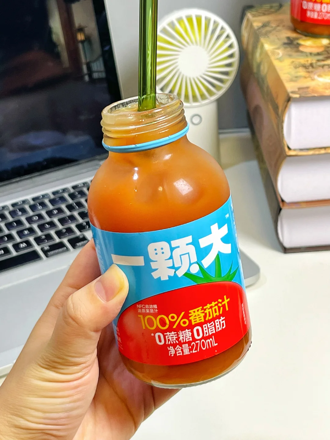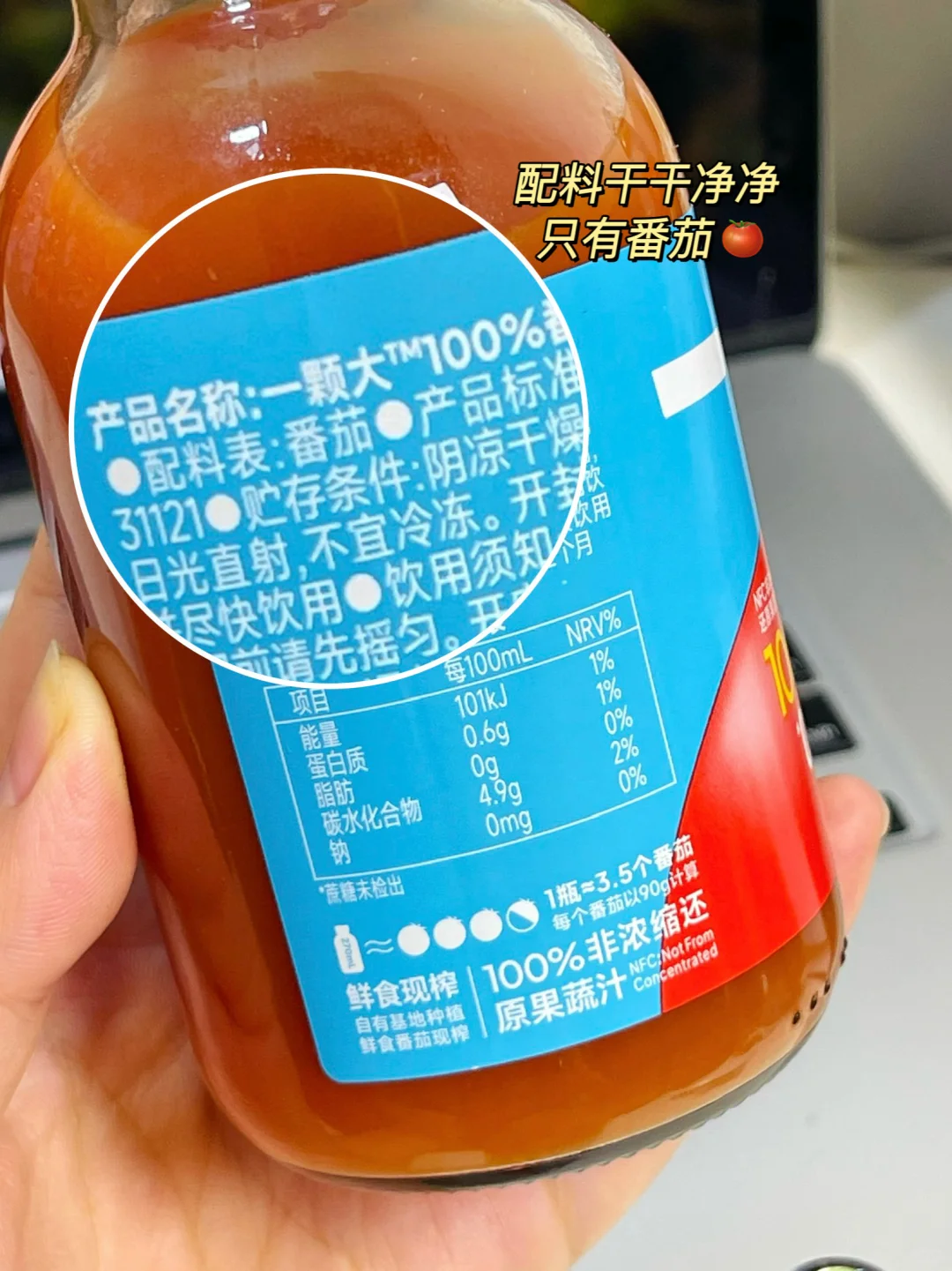 去冷白皮闺蜜家玩,喝了一瓶冷藏的番茄汁,一下子就被种草了!! 就是这个一颗大100%番茄汁🍅 回家果断囤了一箱!! - 它这个配料干干净净,只有鲜果番茄!! 酸酸甜甜超好喝,浓郁的番茄果香,不愧是 100 多天自然成熟的番茄🍅 一瓶≈3.5 个番茄,不爱吃蔬菜的宝子也能及时补充 VC!! 而且里面含有番茄红素,怪不得闺蜜素颜这么抗打,女孩子一定要多喝!! 0 糖 0 脂0 添加,减脂期也可以大口吨吨吨~ - 早上来一瓶元气满满,好喝又营养,比奶茶健康多了!! 建议黄黑皮姐妹都去试试!!