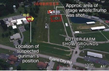 枪手距离特朗普不过区区一百五十米,肉眼可见;
