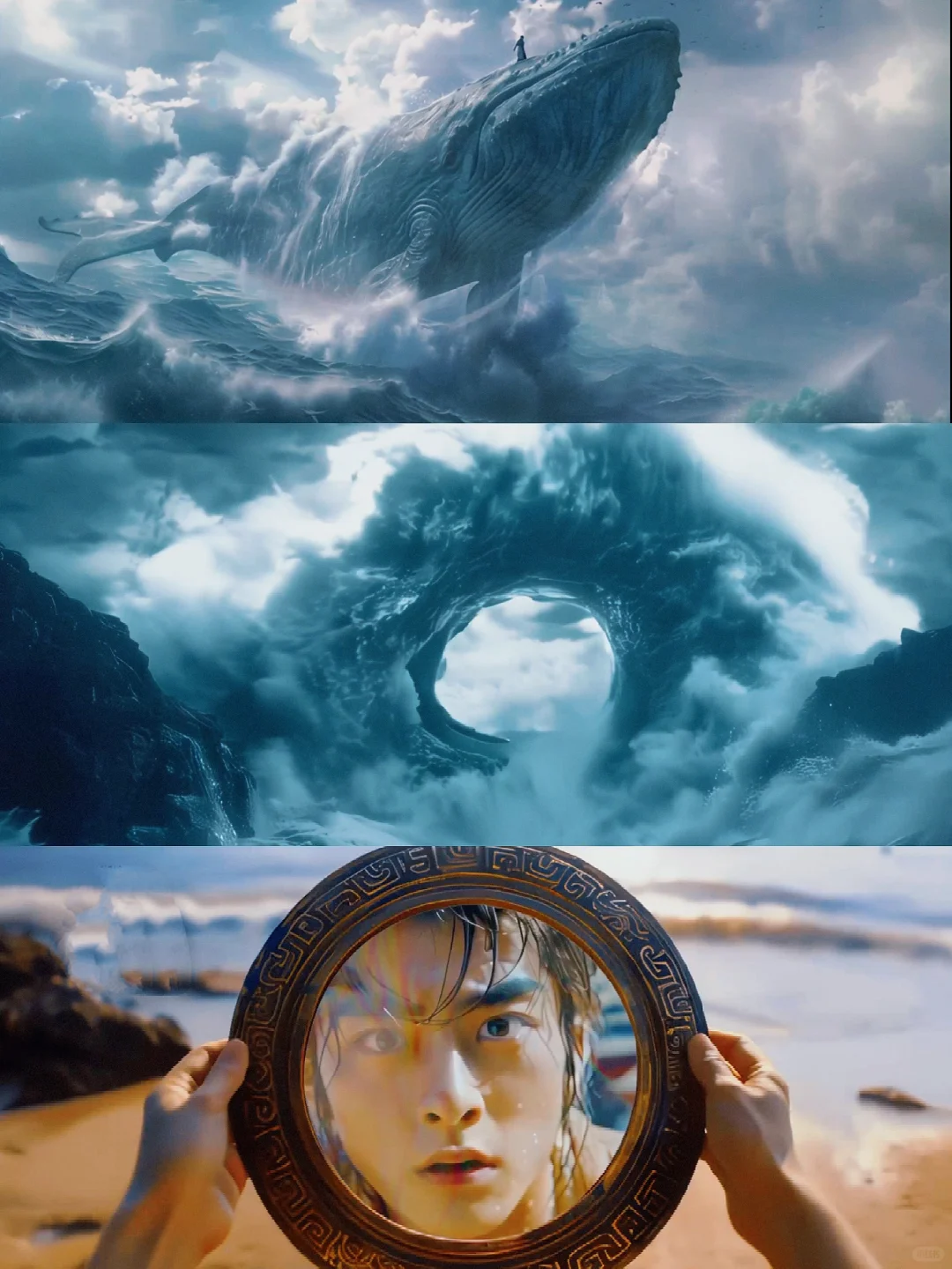 我大为震惊‼️‼️ 这竟然是AI制作的,看了这个预告,哇,真的是被硬控住了,挪不开眼睛‼️ 李行舟初航捕鱼获山海奇镜,异象后,怪兽九婴肆虐,掳其母。为救母,李行舟踏上征途,历遇赢鱼、共工,得鲲鹏助,取水神戟劈海,鲛人助斩九婴,救回变鲛之母、乡亲及失踪父,终团圆。 细看内容,老祖宗的审美,在AI的支持下,将古老神秘的山海经呈现在我眼前,天空,海洋,奇珍异兽都是给人以震撼,视觉冲击力强到可怕,而且这个是短剧啊,这么精致的短剧就算放在十年后,也是遥遥领先的‼️ 答应我,一定要抢先一步码住‼️
