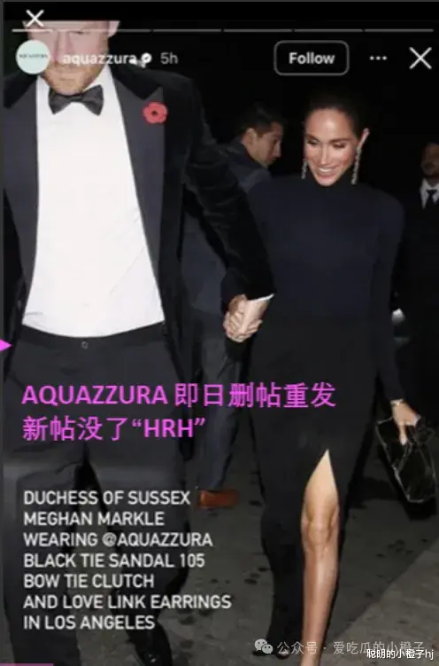 而在结束派对之后,服装品牌方Aquazzura 就在社交账号上发布了梅根的帖子。