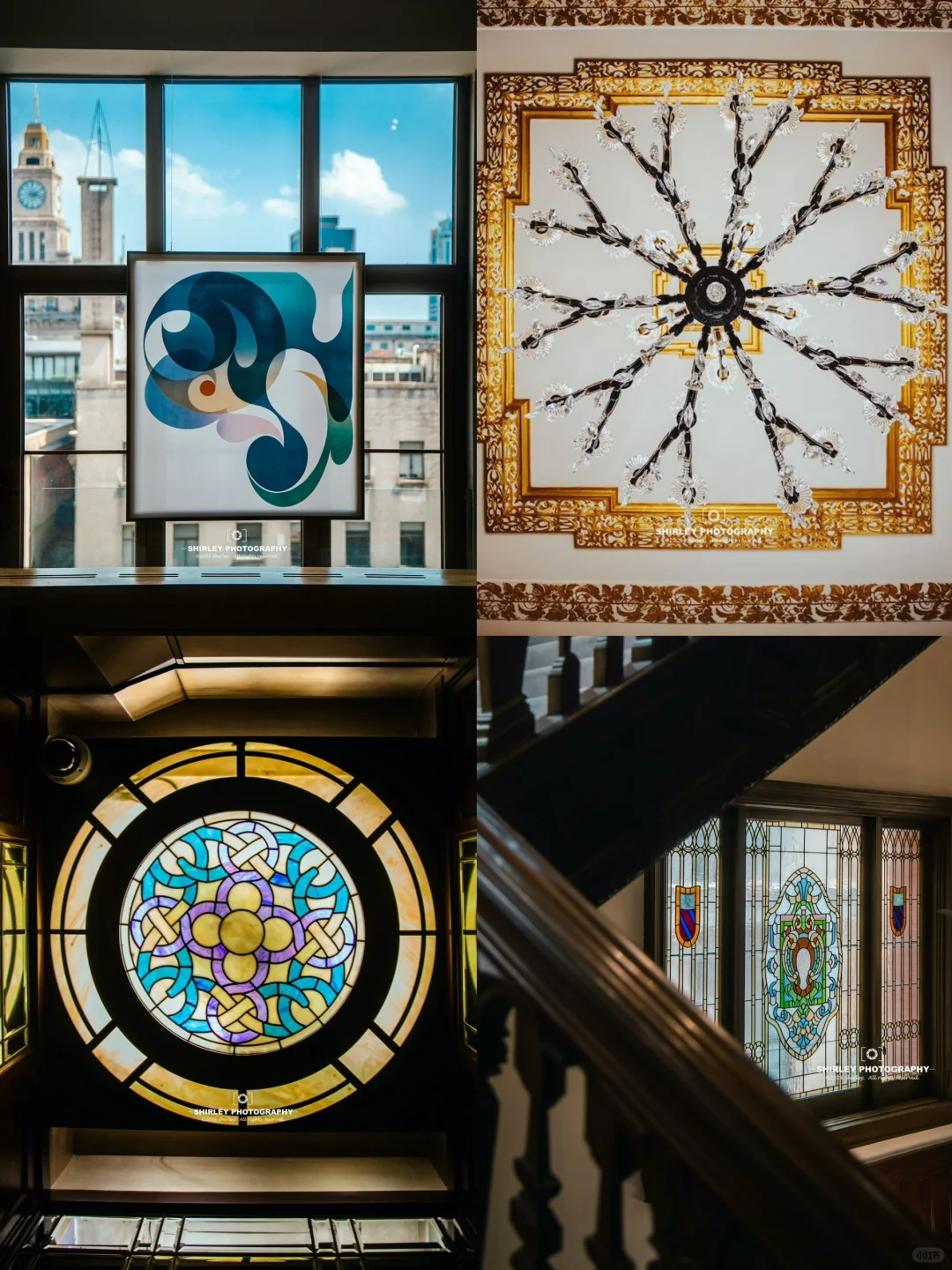 和平饭店南楼因用于艺术创作不对外预订,平时开放得也不多。始于1906年的建筑内外皆呈现文艺复兴风格,护墙、柱身、楼梯等木雕装饰做工精致考究。