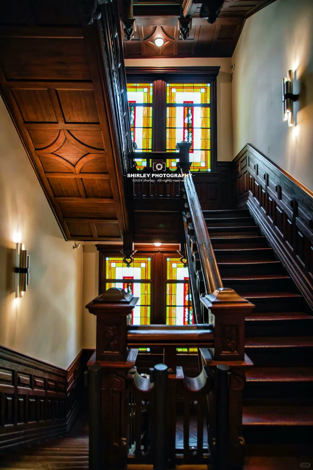 建于1921-1927,主人是昔日沪上买办姜炳生,新古典主义风格。此前一直是奢侈品牌的驻扎地,很少对外开放。内部空间华丽雍容,满满的精致细节感。木质旋转楼梯和彩色玻璃花窗,在阳光下美轮美奂。