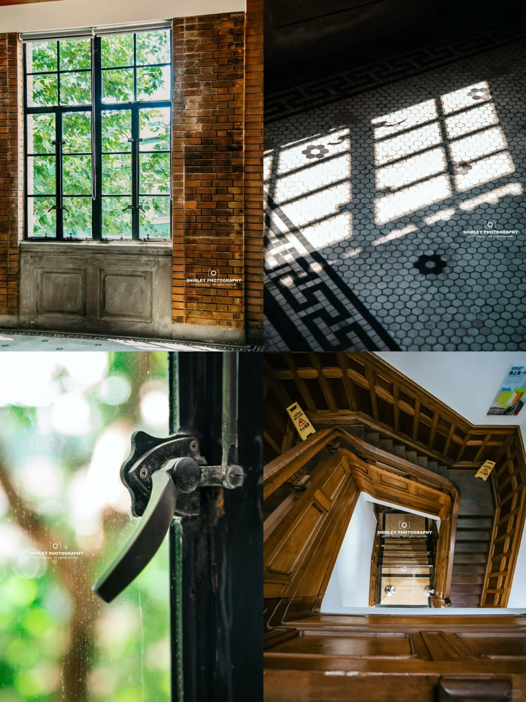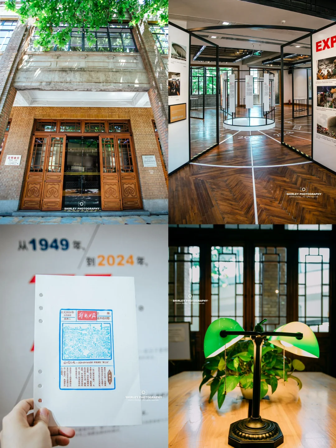 建筑中西合璧,立面受建筑装饰艺术派风格影响较大,又融入了中式建筑元素。经过精心修复,如今是解放日报的办公地,因办展首次对外开放。二层阳台晴天时光影绝美,安静得仿佛能听到历史的回声。