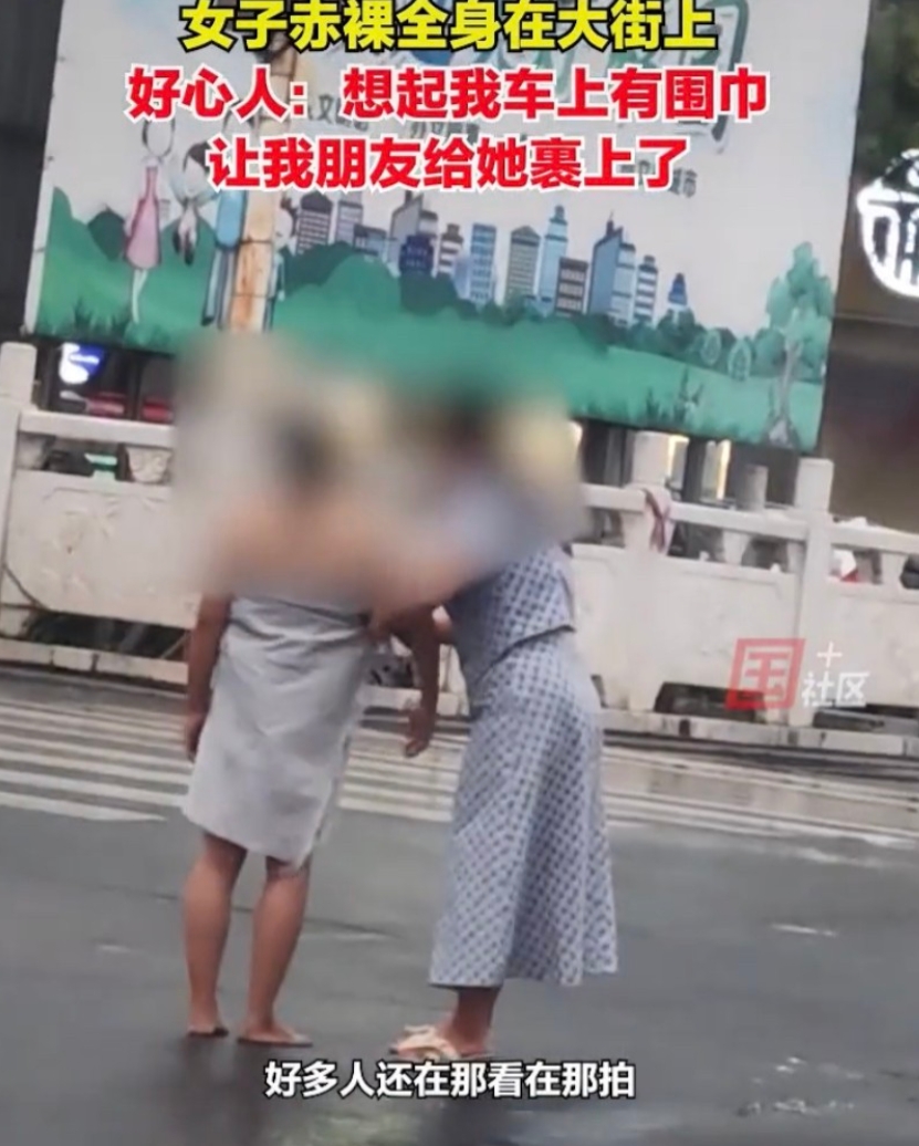 世上还是好人多啊!河南洛阳,一女子赤身裸体,站在马路中间,引起了不少人的注意和拍照,男子开车时刚好路过,实在不忍心,就拿出车上的围巾,让女伴上前帮忙给女子裹上,并安慰说:不要弄掉了,要爱自己