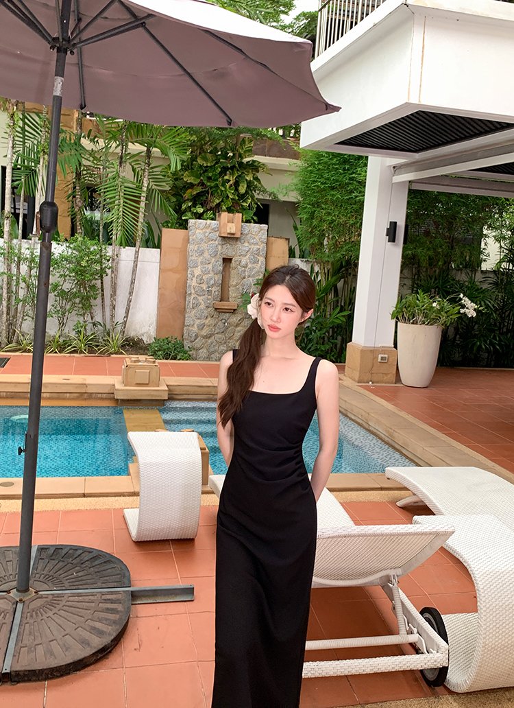 夏日的派对季,怎能缺少一件经典的小黑裙?DPLAY2024夏季新款,法式黑色方领后背露背收腰吊带裙,将优雅与性感完美融合,让你成为每个场合的焦点。