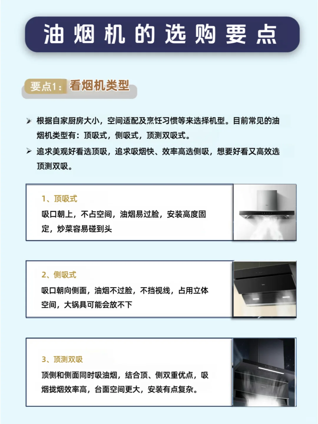 追求美观选顶吸式,追求效率选侧吸式,兼顾两者选顶侧双吸