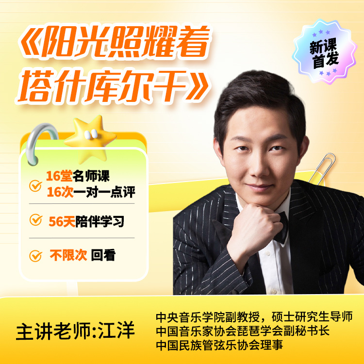跟随乐通天下特邀著名琵琶演奏家江洋老师逐音摸谱,逐句精讲学习,都将实现从“弹得对”到“弹得好”的突破,从零拿下《阳光》全曲!