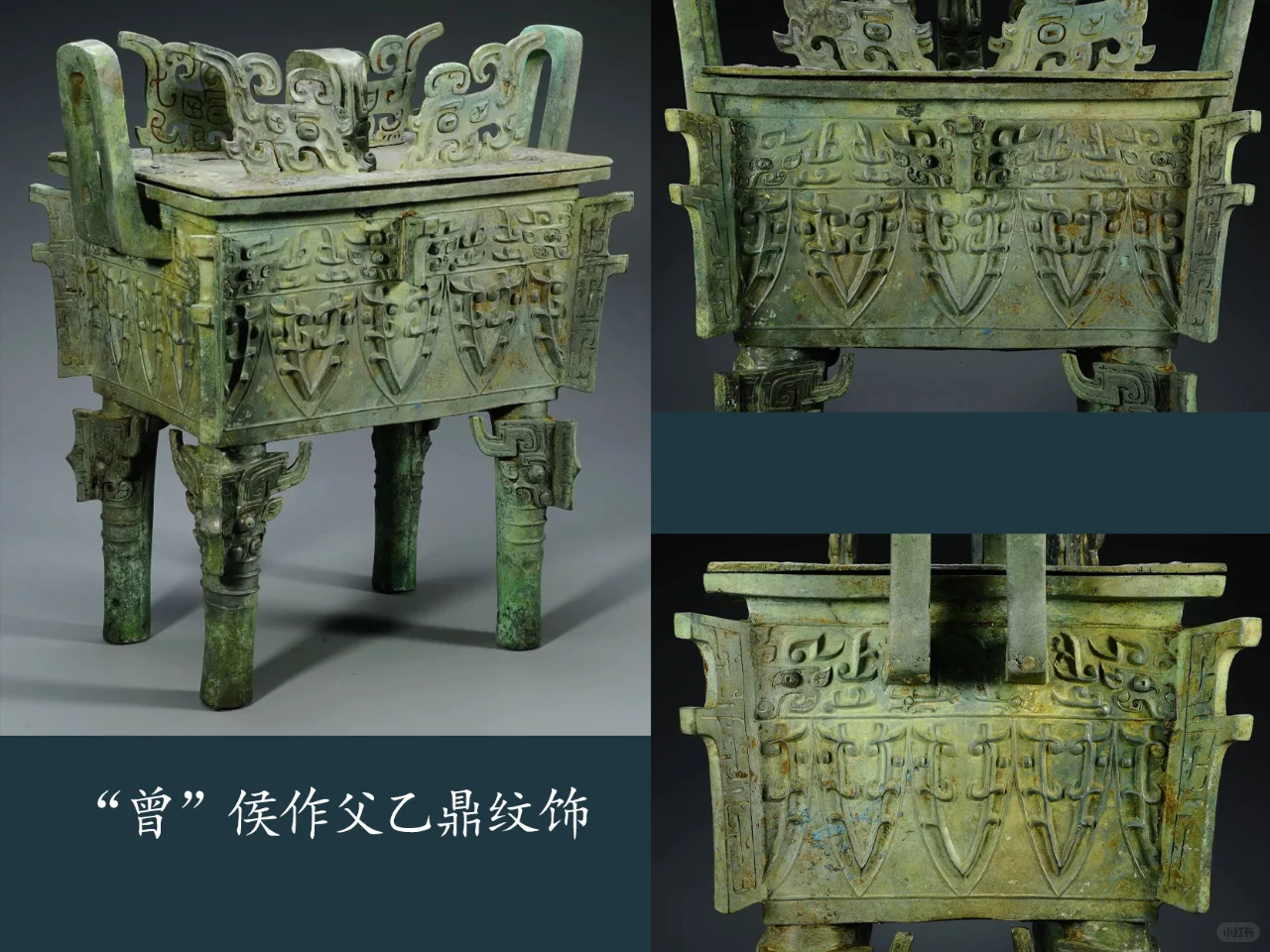 释文:父乙(给)“曾”作宝樽彝,这件方鼎是父乙(日名,宗名,祖庙掌管者)给“曾”侯作的器物。