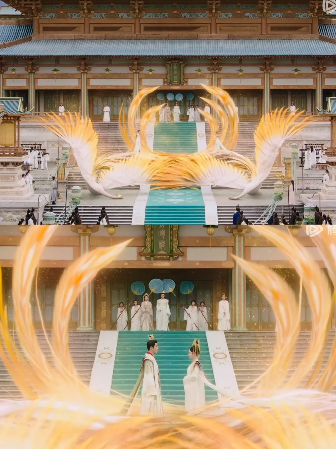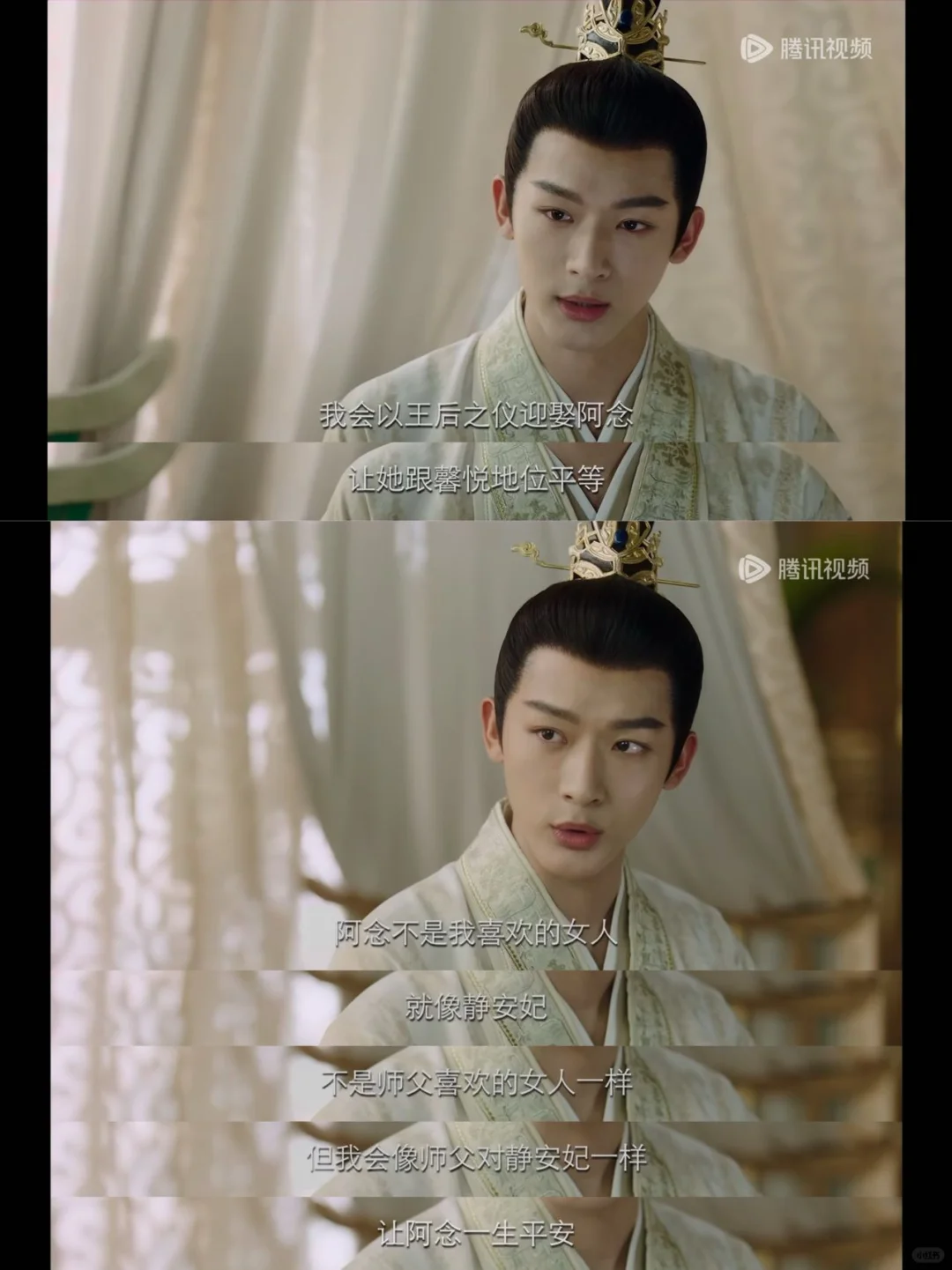 婚礼上,小夭遵守约定并未出现,玱玹和阿念虽然彼此带着笑意,看似两心相依,实则各怀心事。