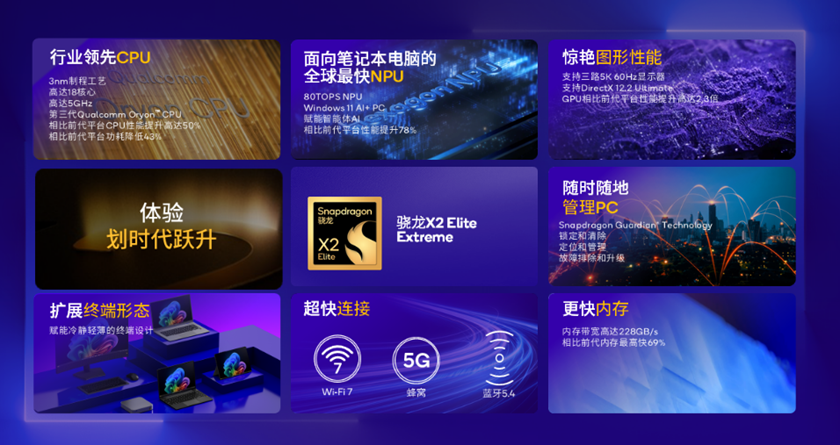 高通骁龙X2 Elite最令人惊叹的突破,在于它实现了性能与能效的和谐统一。这不仅是技术层面的进步,更代表着一种新的科技美学,最强性能不必以牺牲续航为代价,极致体验无需依赖电源线的束缚。在3nm工艺与创新架构的加持下,搭载高通骁龙X2 Elite的设备能够持续运行20小时以上,这改变的不仅是使用时长,更是人与设备的关系。当创作者在野外拍摄后可以即时进行后期处理,当商务人士在长途飞行中能够完成复杂工作,科技真正成为了延伸人类能力的无形翅膀。这种“无感”的卓越,正是技术发展的至高境界。