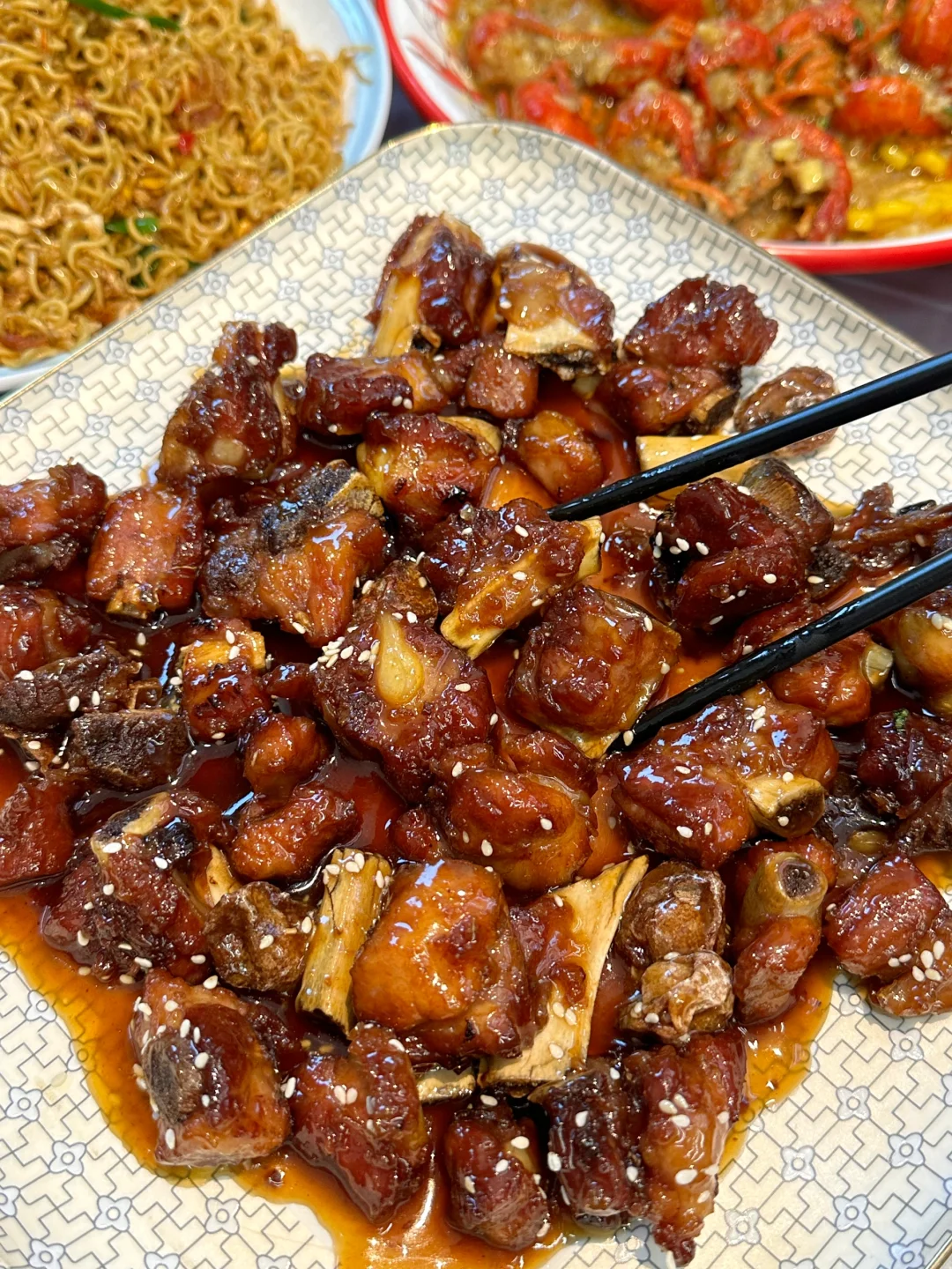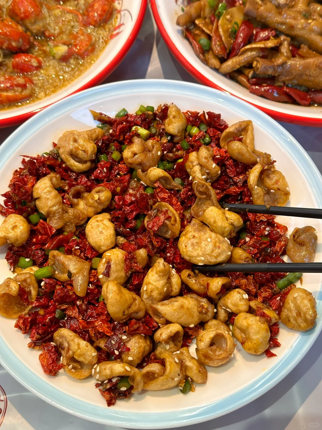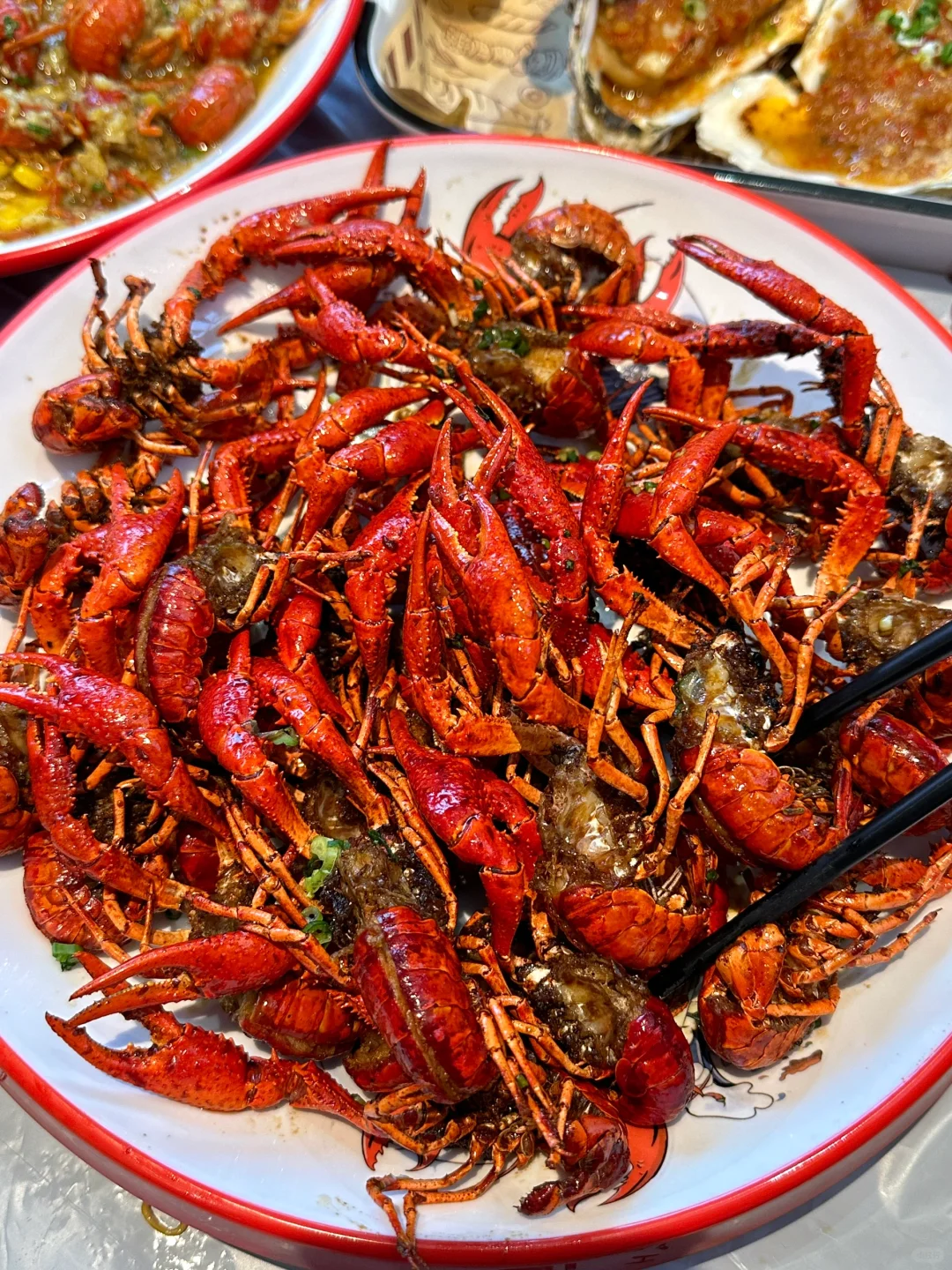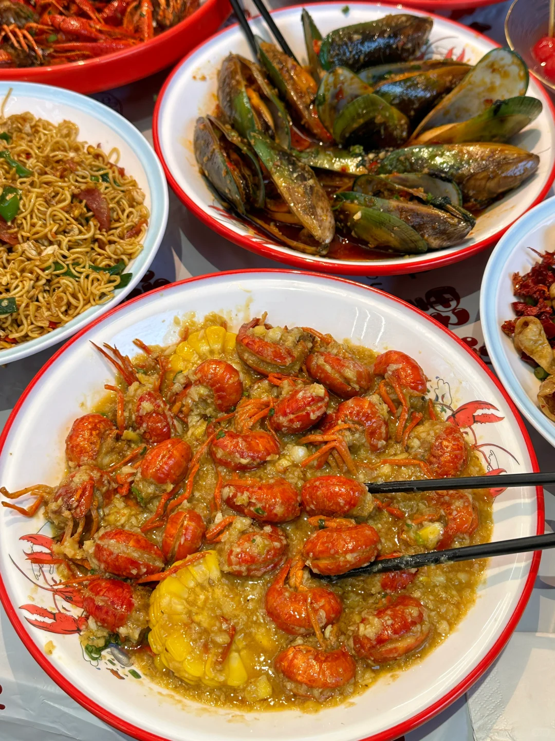 感谢长沙本地人的推荐!下高铁第一顿小龙虾直奔这里(蝦舟野道)真的好好吃啊!果然没失望🥹… 从湘潭开了好多年,靠着口口相传到长沙!!味道完全不输网红店!!真心建议来长沙一定要去吃。 干煸虾真的百吃不厌!虾子个头又大,肉质鲜嫩,真的巨巨巨香~还有蒜蓉虾尾 糖醋排骨,和家里人点了满满一桌都不错!!