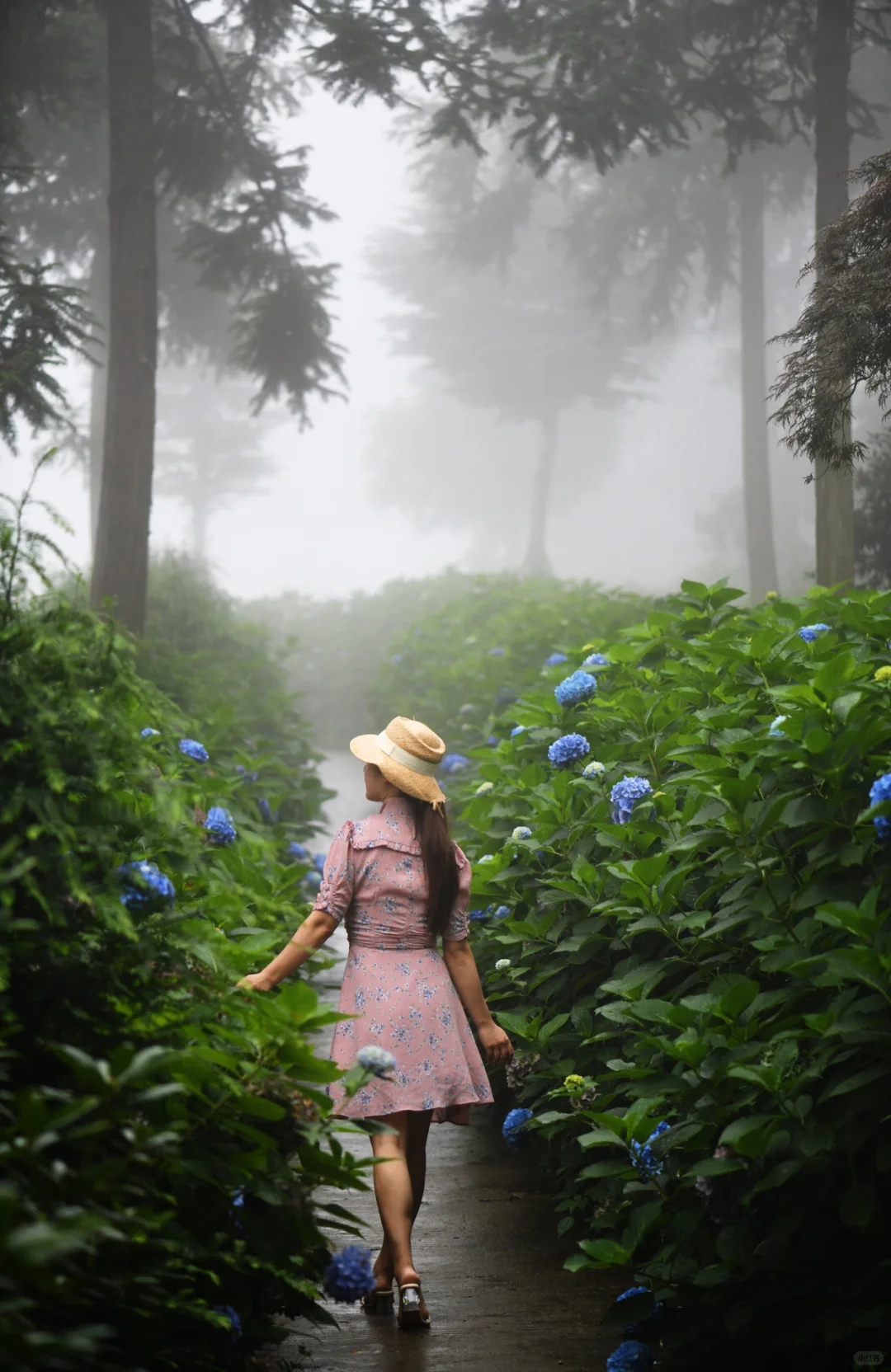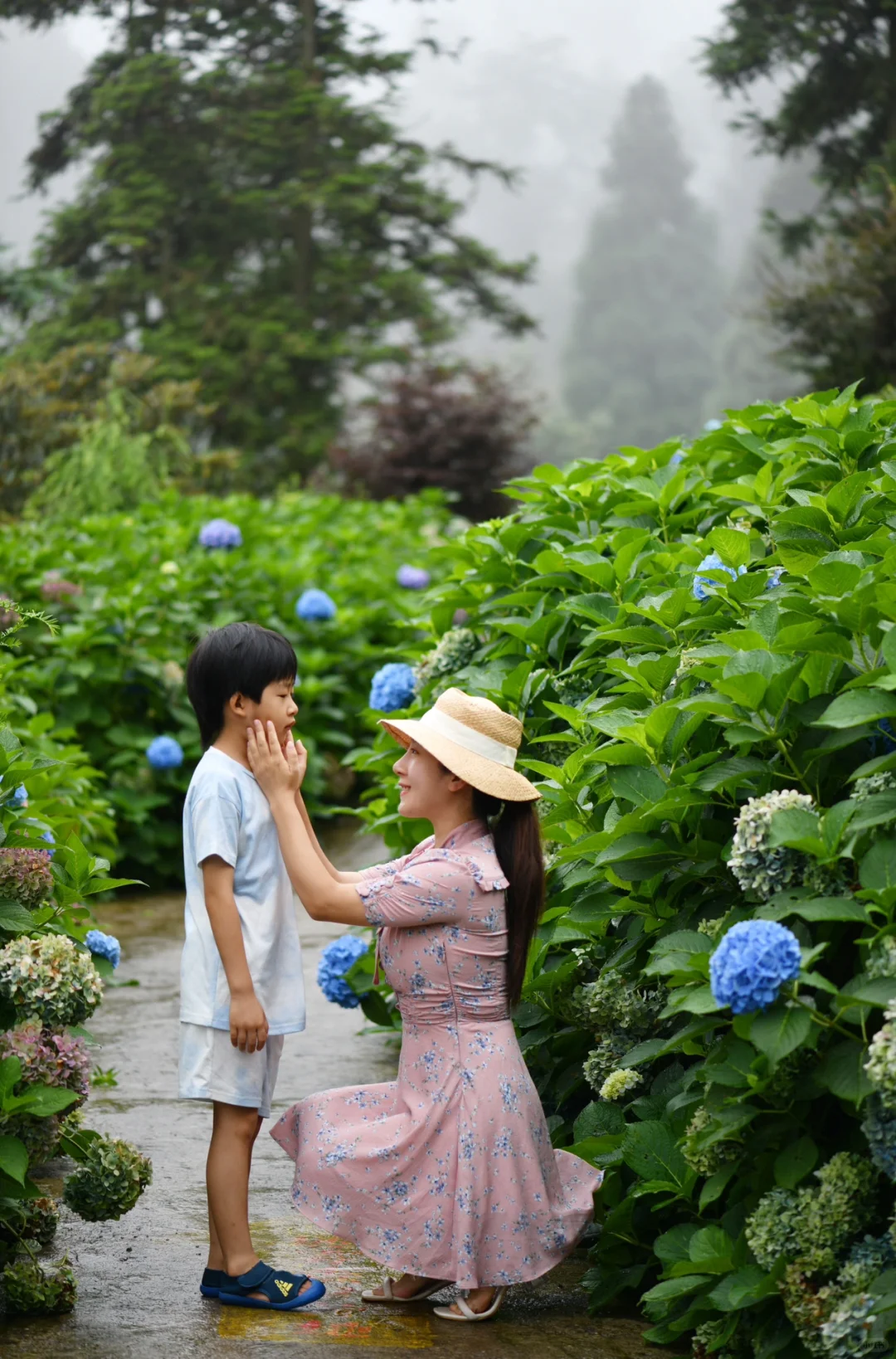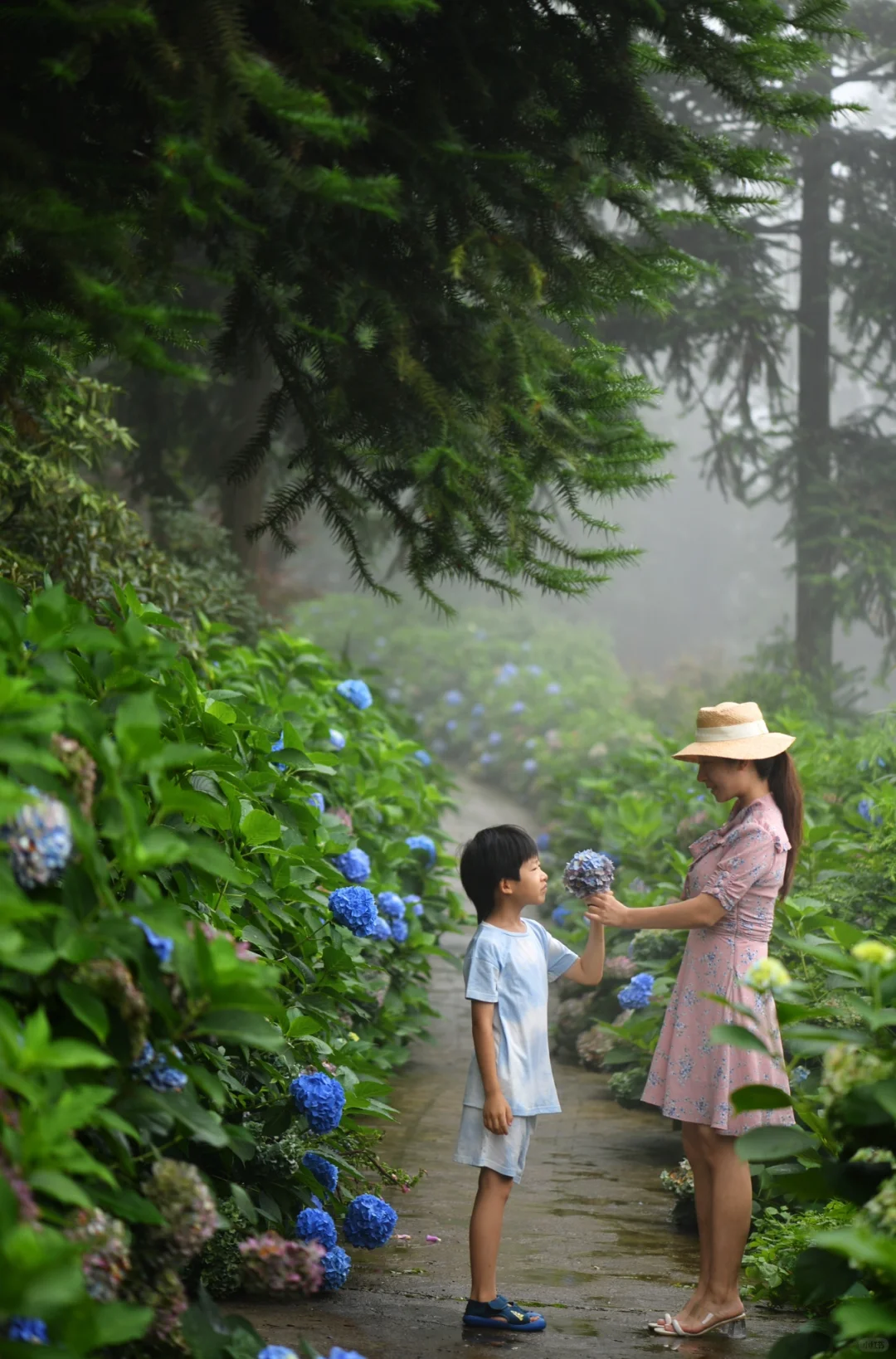 3️⃣绣球花如梦如幻,蓝眼泪绣球花、冰淇淋绣球花连成了一片,像是闯入了莫奈的花园