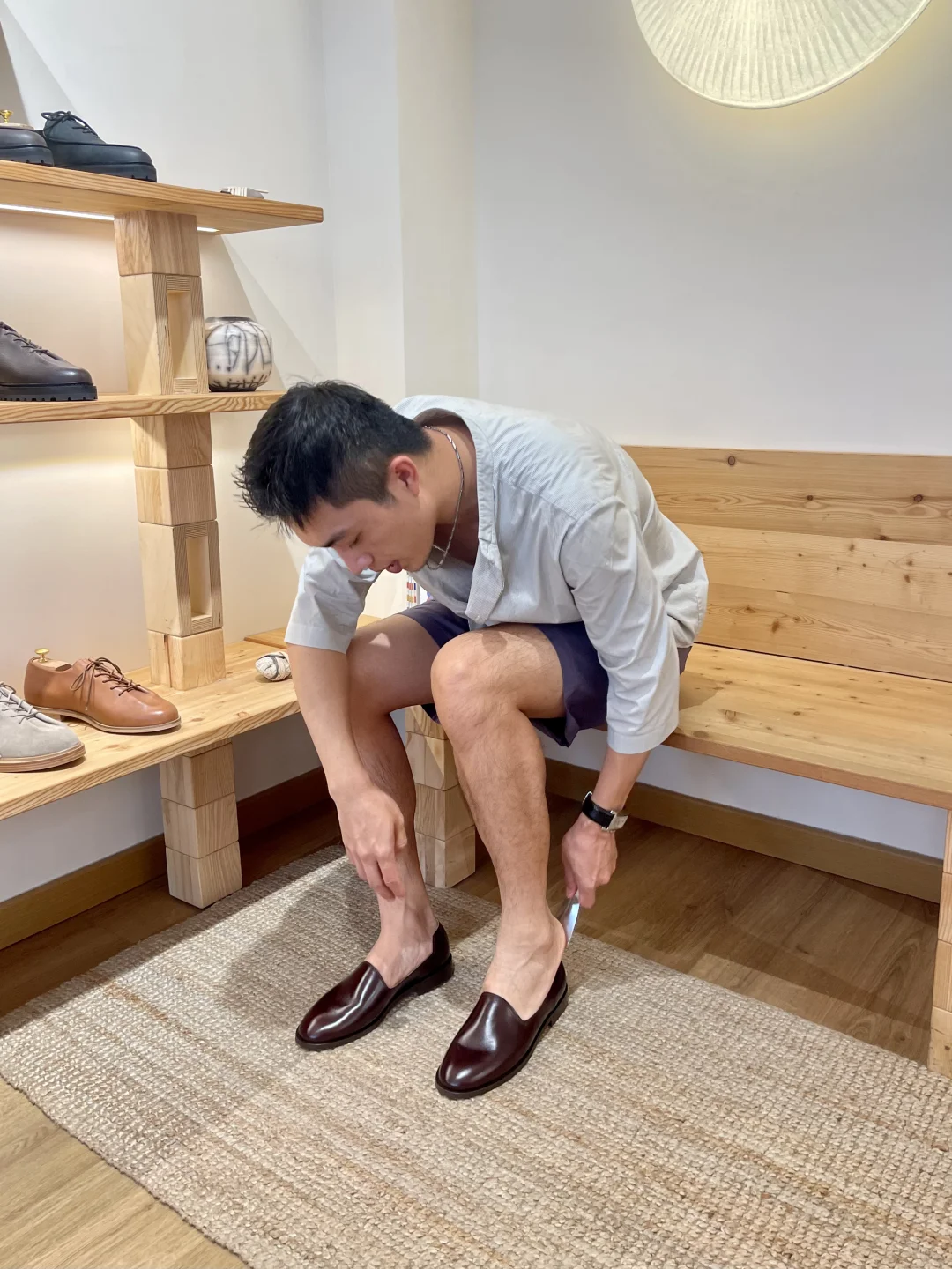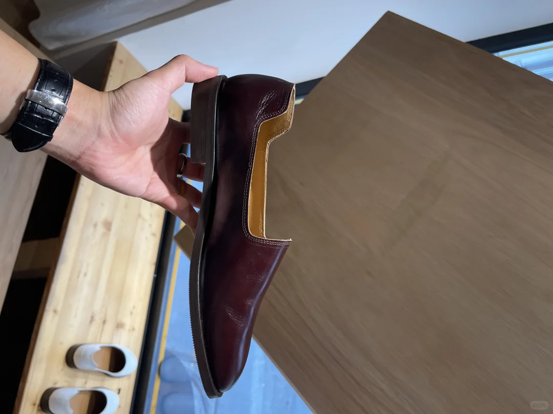 能开在老钱扎推的6 区肯定有真本事,我上脚这双在经典乐福鞋的鞋型上做了改良,留给脚背更多的空间,很适合脚背高的朋友,勃艮第红的亮面皮也很特别,causal和正式场合都能应付~