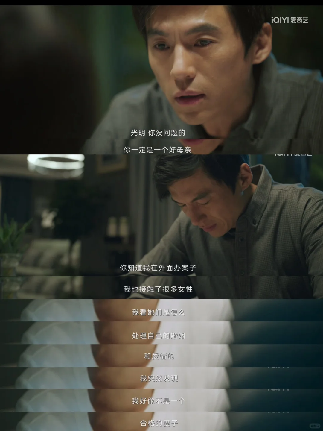 很喜欢最后一集的这段对话,姜光明没有因为孩子选择迁就,她还是毅然决然选择了离婚。但是她选择离婚不仅仅是因为对方出g,也没有把离婚归结于一个人的责任,而且自省了婚姻中存在的问题,坦诚了自己不是一个合格的妻子,在婚姻中她忽略了对另一半的陪伴,也没有理会丈夫的诉求。