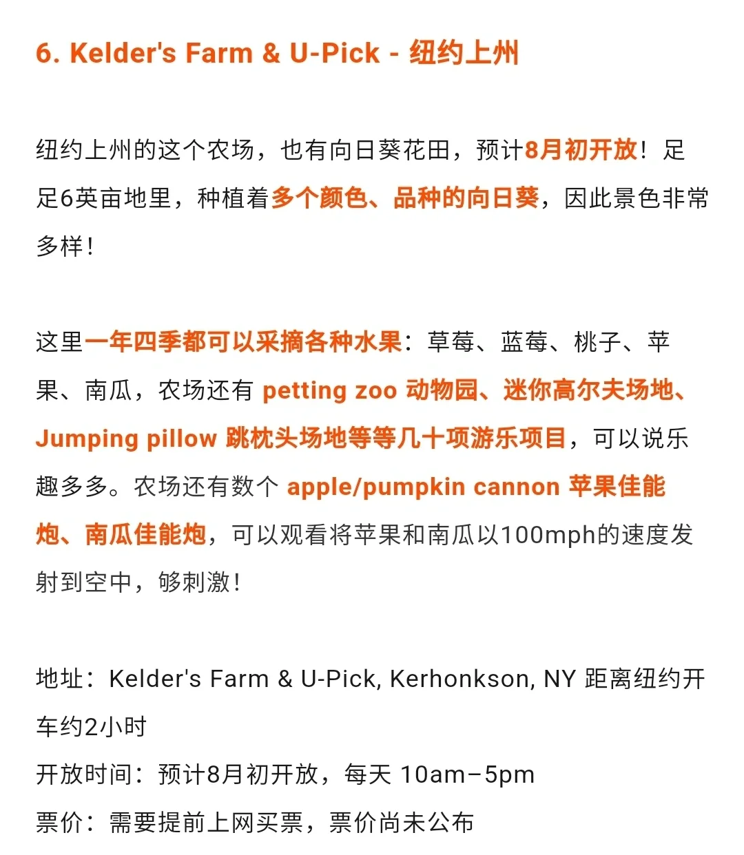 纽约上州的宝藏农场,6英亩地里种植着多个品种的向日葵!还可以采摘草莓、蓝莓、桃子、苹果、南瓜… 还有动物园、迷你高尔夫场地、蹦床等