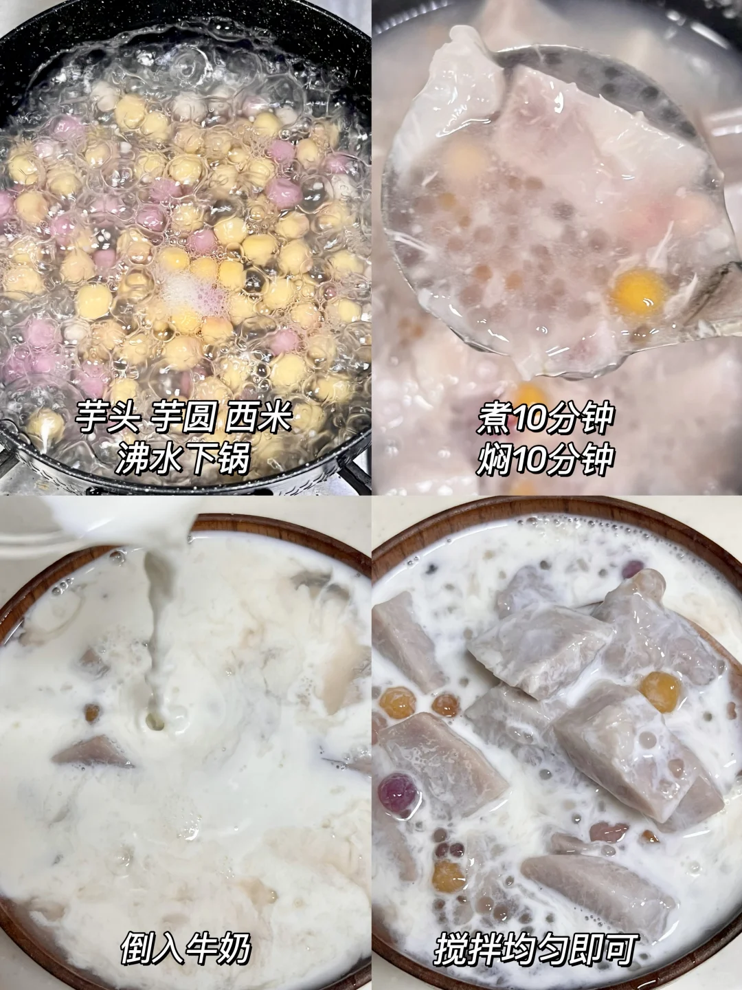 十分钟搞定芋头芋圆西米露?? 直接丢锅里就行了 太简单了吧!! 芋头很绵密~丸子q弹!冰镇一下更好喝