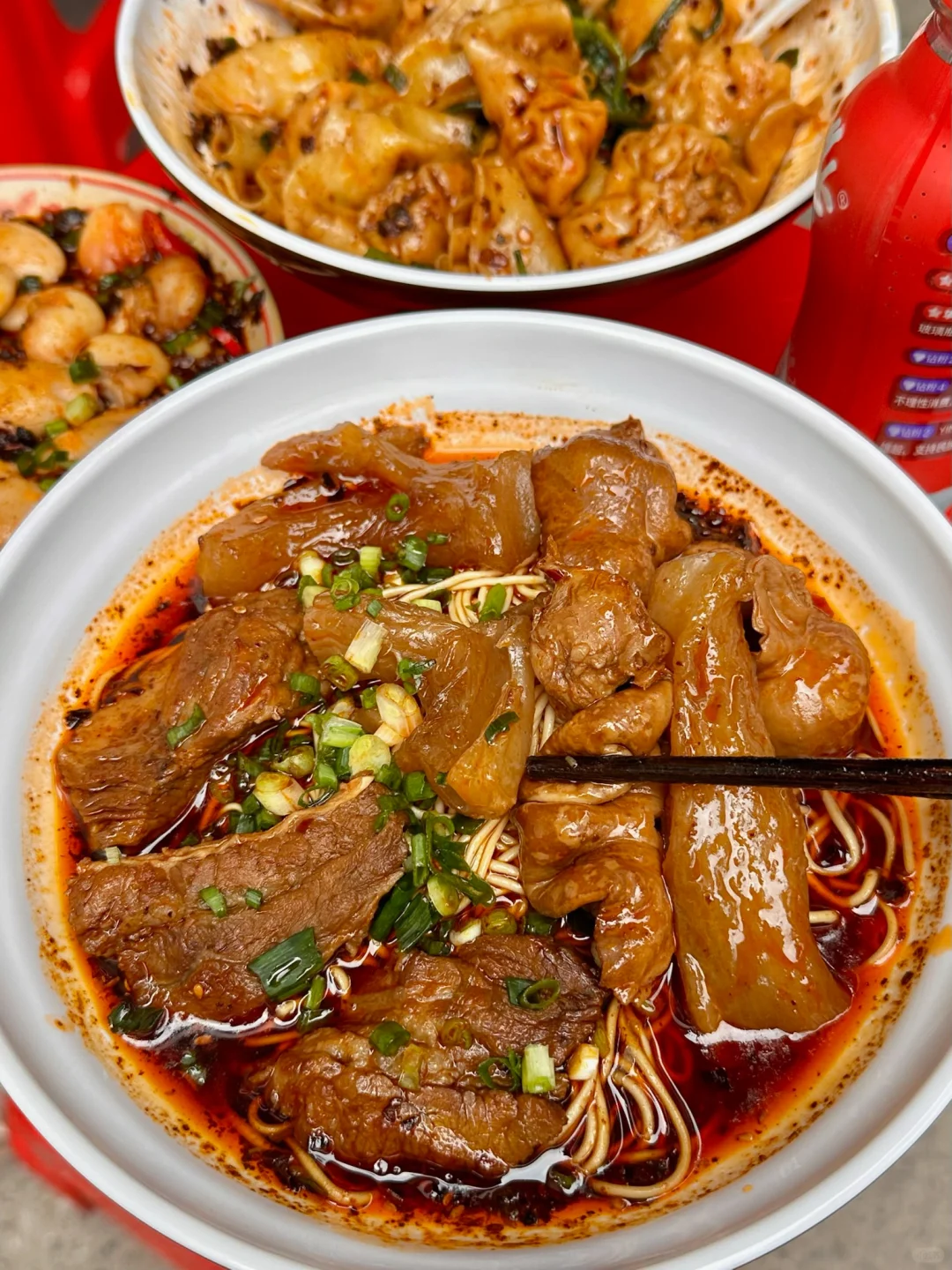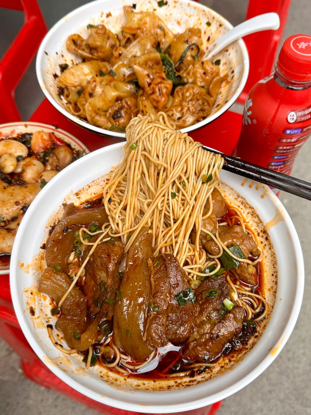 感谢长沙大学生的推荐😭!!终于在长沙吃上重庆小面…就在万家丽(叫:钱 幺妹)真心好吃又便宜啊!!人均💰十几好大一碗!! 麻麻辣辣的,豌杂味道好香!还可以➕肥肠 牛筋牛肉…都好好吃啊!记得试试每天现做的蹄花汤,软糯糯的蘸辣酱吃绝了🥵!!