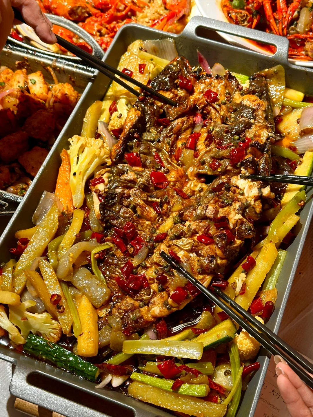 被本地朋友带路,在长沙砂子塘社区巷子里 吃到有被惊艳到的大排挡😭真的吼吼吃…刚到饭点就络绎不绝的本地人,挤满了小巷子🔥好有烟火气息… (叫:留一手)都冲着他们烤鱼来的…吃了果然没错,肉质鲜嫩好有滋味!!还有烤虾滑,烤羊肉又嫩又多汁…口味虾卤虾🦞也不错,路过长沙这个位置,一定要去吃啊啊啊~