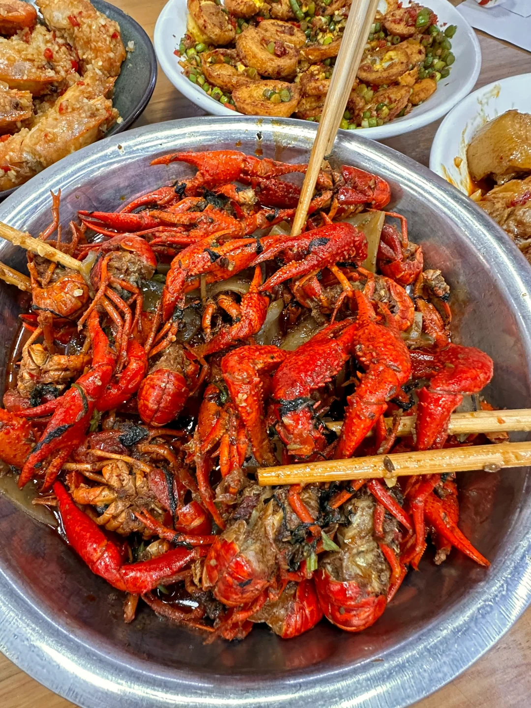 不愧是被长沙本地人推荐的老店!!终于吃上了,果然没失望🥹…在市中心开了七八年,口碑一直不错!!地道的长沙口味,份量扎实又好吃!!蒜蓉罗氏虾 口味龙虾…个头大肉质又饱满,好爱好爱~~ 还有孜然排骨、臭豆腐烧猪脚、金钱蛋…都是家常菜的做法,好吃又下饭🍚啊啊啊!!来长沙别再去排队网红店了😭!!来这里难道不香吗?!